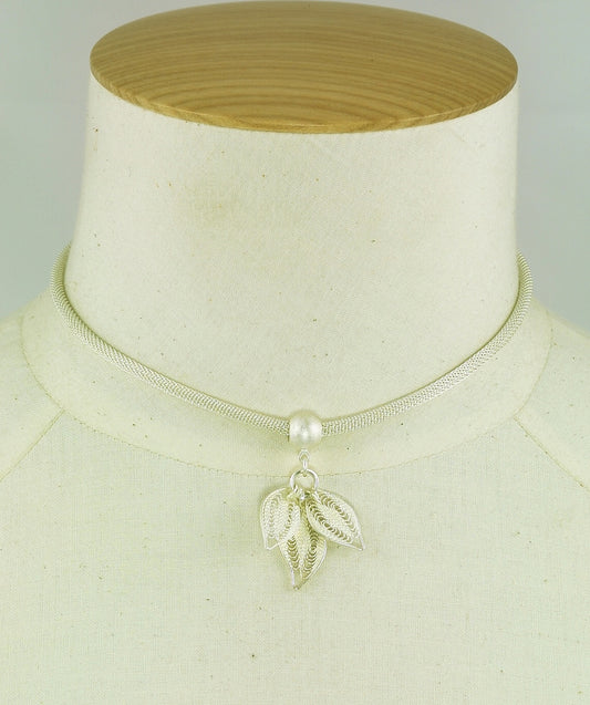 New York Mesh Designer Necklace With Mesh Leaves Pendant