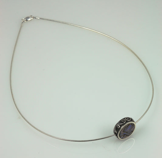Sterling Silver & Paua Shell Pendant On Omega Chain