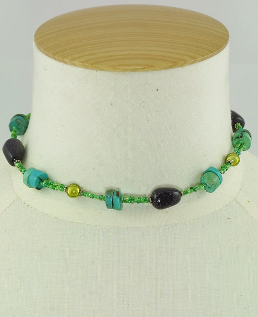 New Zealand Made Turquoise & Goldstone Necklace With Magnetic Clasp