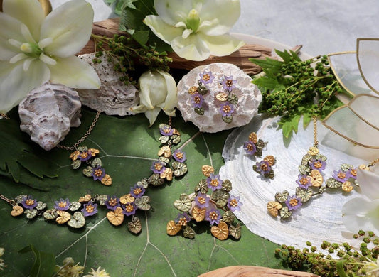 This unique jewellery is made by creating moulds directly from botanical elements in a process similar to lost-wax casting. While traditional lost-wax casting begins with a hand-carved model of wax, Michael Michaud instead uses an actual leaf, branch or flower in place of the wax model. A mould is created around the botanical element and as it is heated the plant matter burns away and leaves behind a beautifully detailed mould of itself.