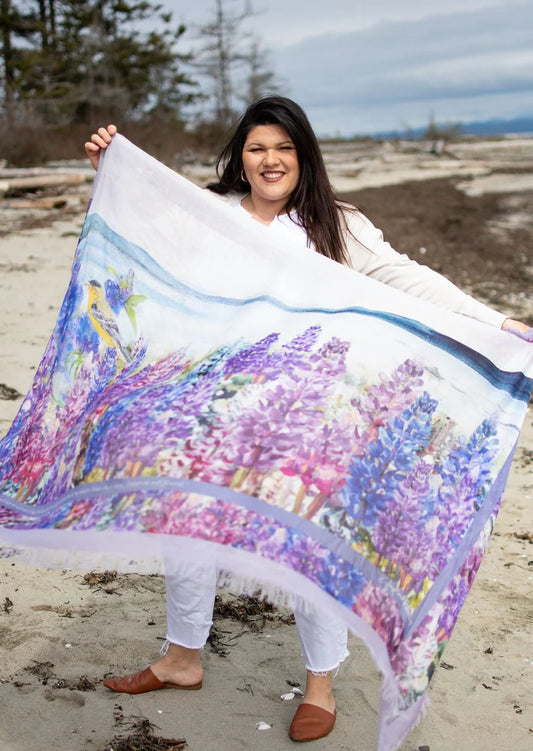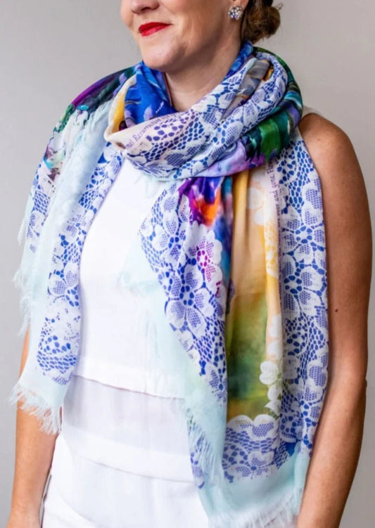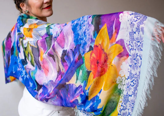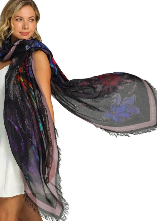 Love's Pure Light Scarf D-427 Hyacinth, I Am Intoxicated By Your Presence. Signed Daffodil Scarf