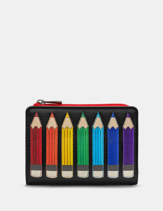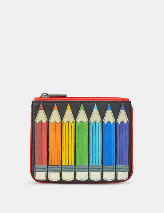 Yoshi Pencils Appliqued Leather Flap Over Leather Coin Purse - Mini Wallet - Y1275 23 PENCILS