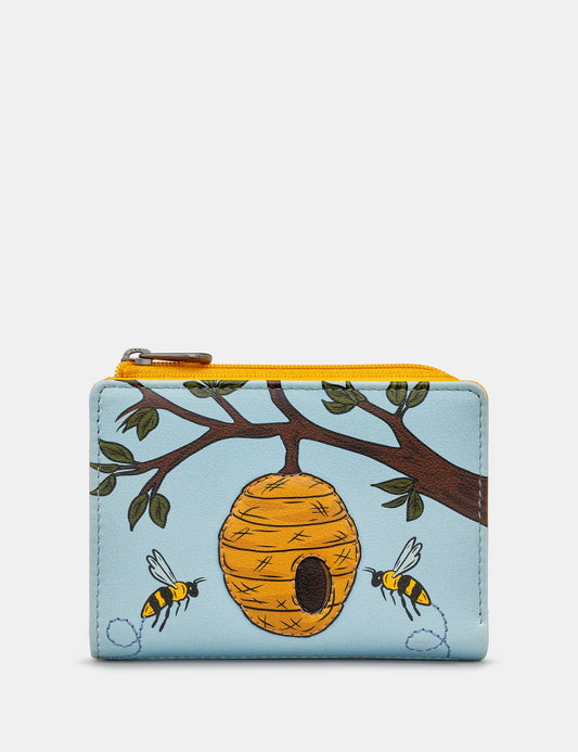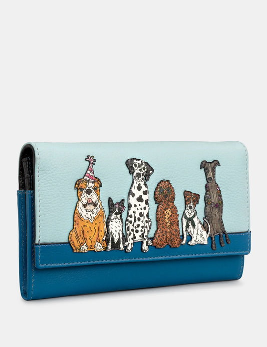 Yoshi Dog Walk Appliqued Leather Ladies Small Zip Around Black Purse/Wallet - Y1089 DW 1