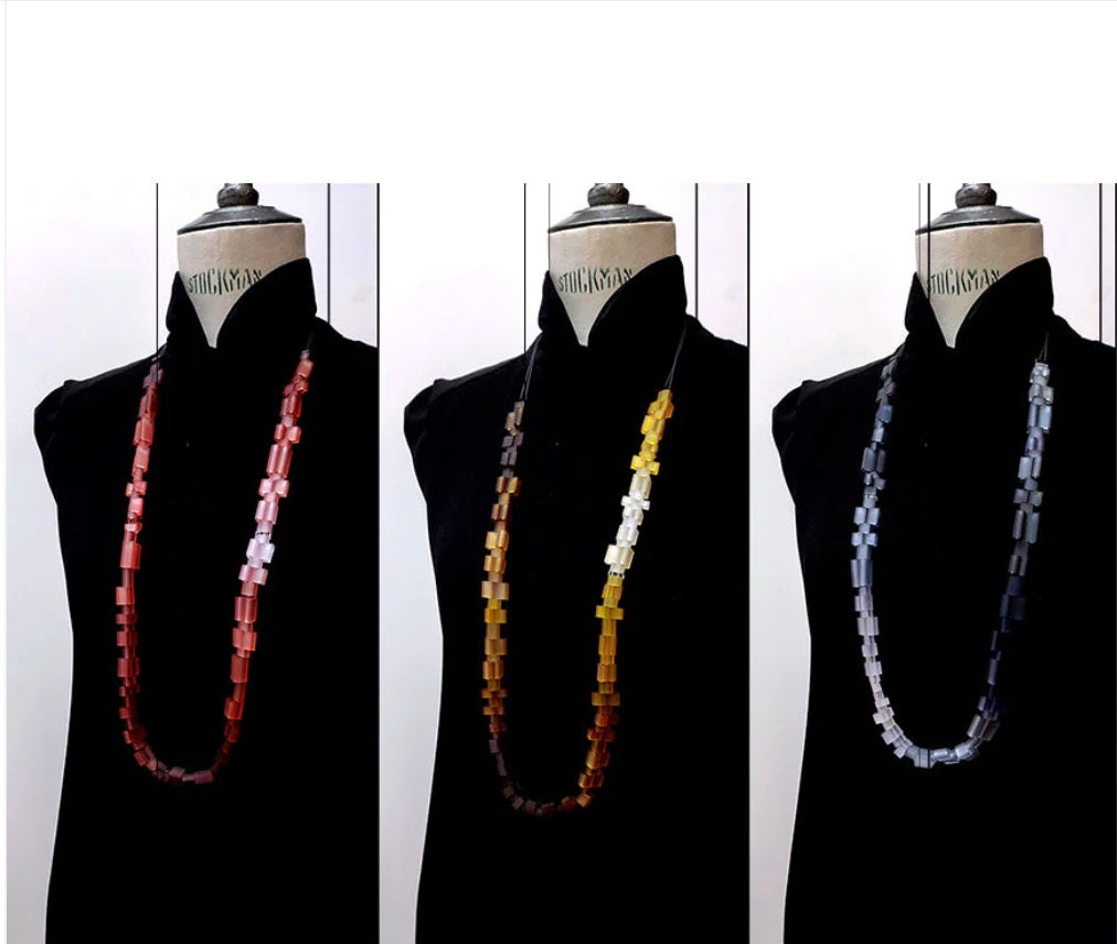 Yalta is a soft and versatile adjustable long rubber necklace.