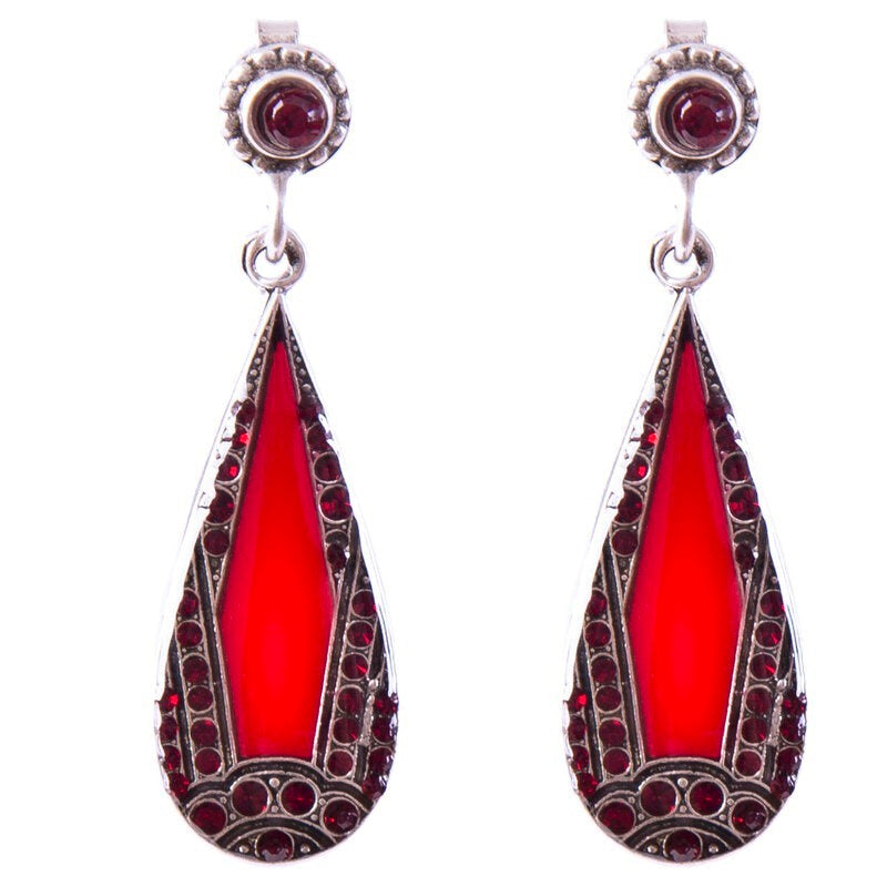 These timeless earrings in silver-plated brass and genuine Swarovski Crystal are handcrafted from original stampings and molds from 1880-1920. The stained glass effect lets the light pass through creating a stunning effect. This jewelry is handcrafted in France at the AU BOUT DES REVES workshop.