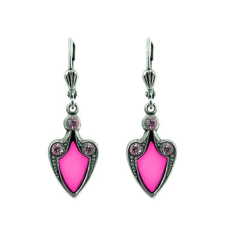 These timeless earrings in silver-plated brass and genuine Swarovski Crystal are handcrafted from original stampings and molds from 1880-1920. The stained glass effect lets the light pass through creating a stunning effect. This jewelry is handcrafted in France at the AU BOUT DES REVES workshop.