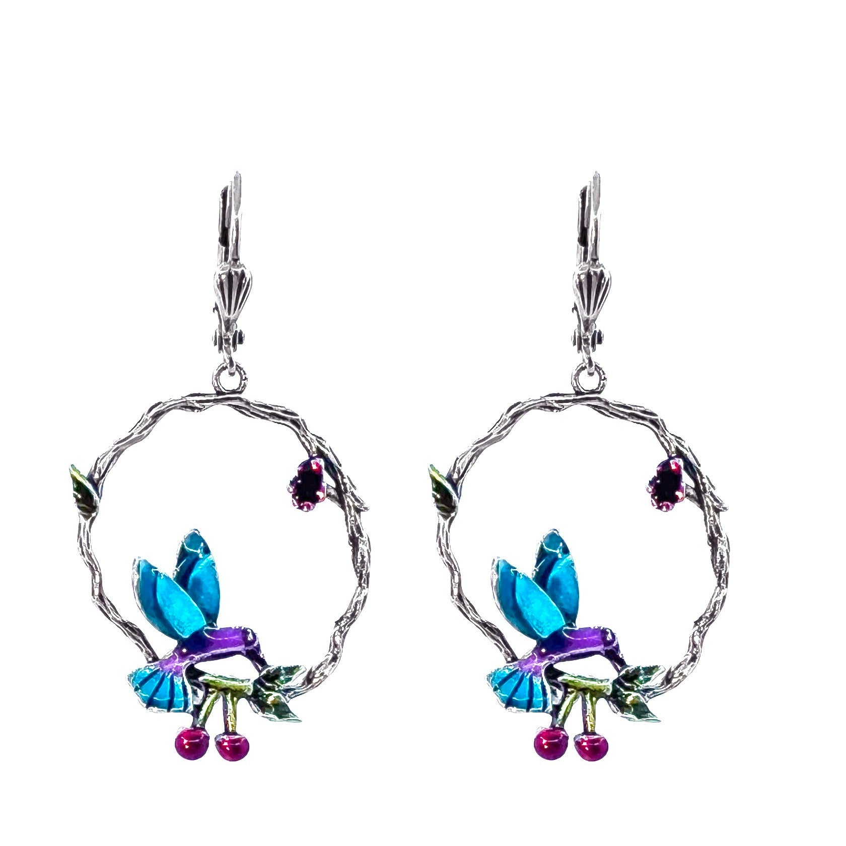These timeless earrings in silver-plated brass and genuine Swarovski Crystal are handcrafted from original stampings and molds from 1880-1920. The stained glass effect lets the light pass through creating a stunning effect. This jewelry is handcrafted in France at the AU BOUT DES REVES workshop.