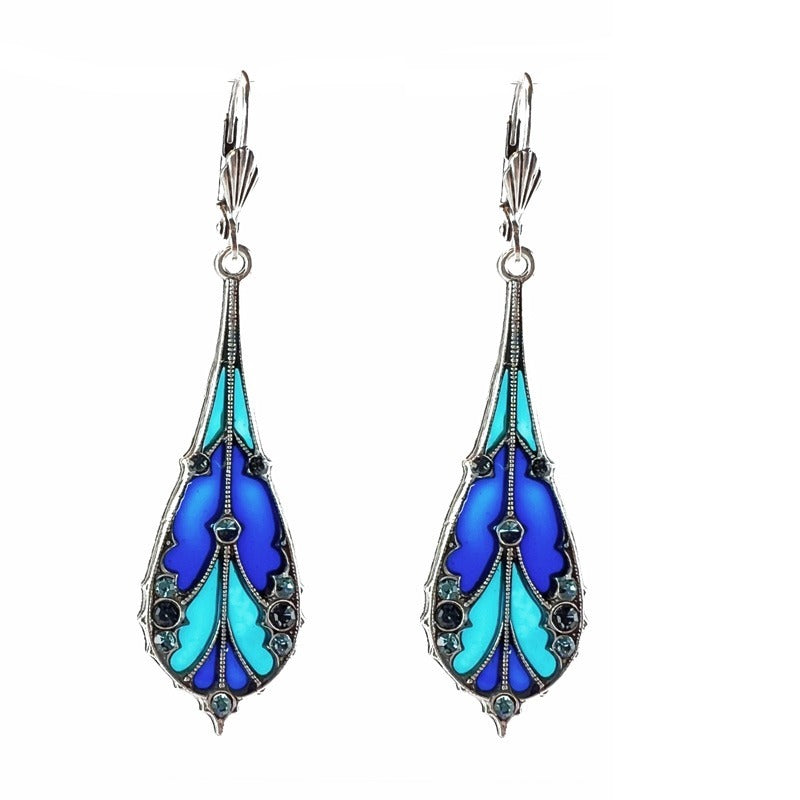 Dimensions: These timeless earrings in silver-plated brass and genuine Swarovski Crystal are handcrafted from original stampings and molds from 1880-1920. The stained glass effect lets the light pass through creating a stunning effect. This jewelry is handcrafted in France at the AU BOUT DES REVES workshop.
