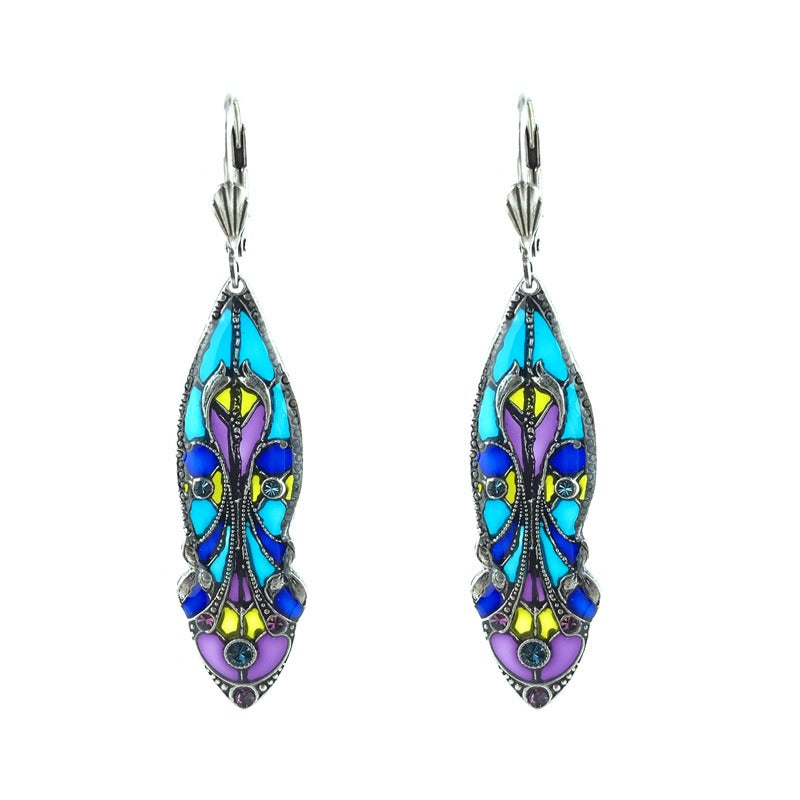 These timeless earrings in silver-plated brass and genuine Swarovski Crystal are handcrafted from original stampings and molds from 1880-1920. The stained glass effect lets the light pass through creating a stunning effect. This jewelry is handcrafted in France at the AU BOUT DES REVES workshop.
