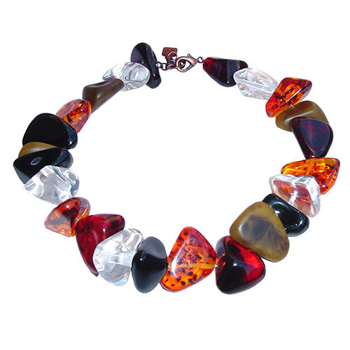 Sobral Design Brazil Flintstone Bone Diamantes Resin Necklace in Orange, Tartaruga, Prada & Clear
