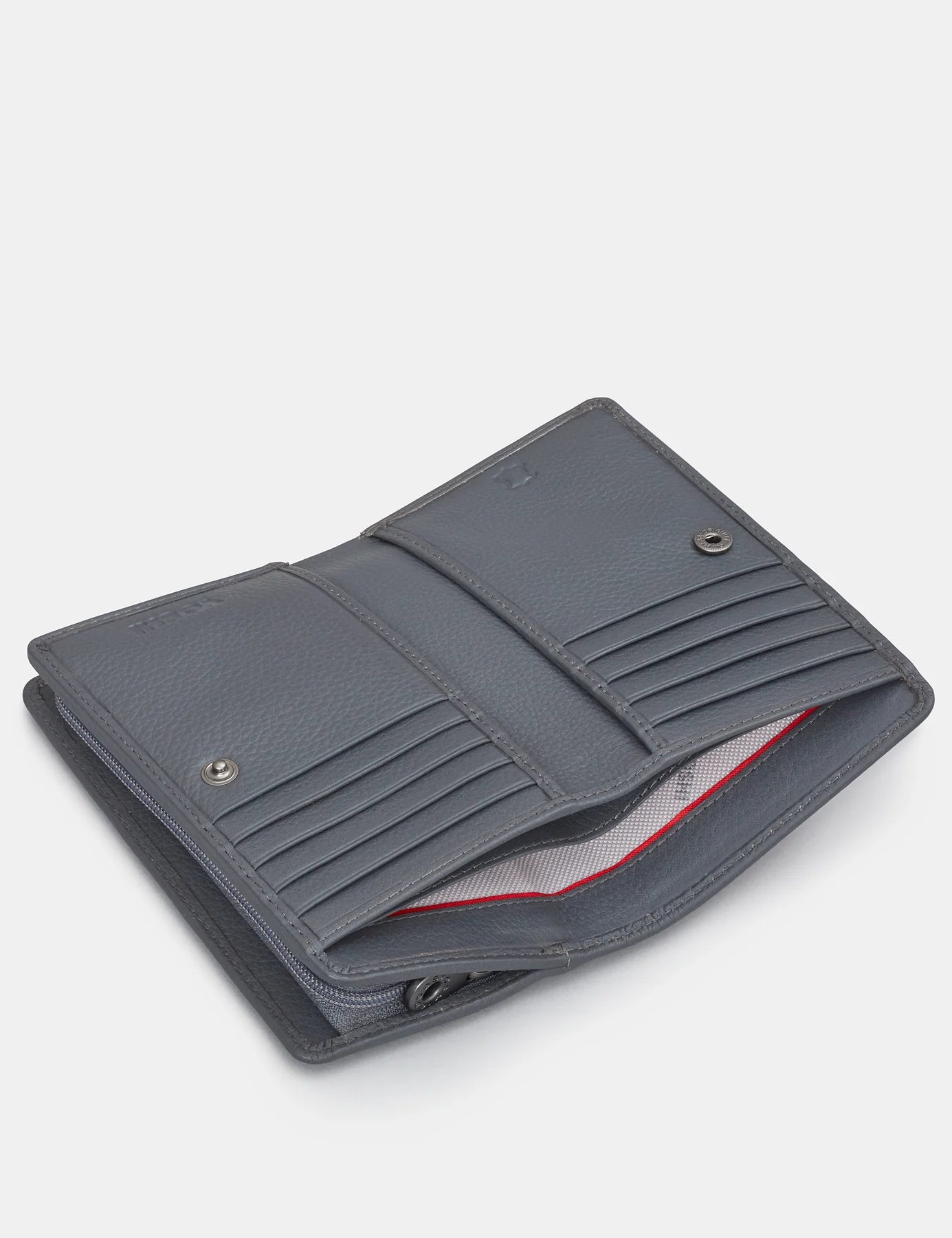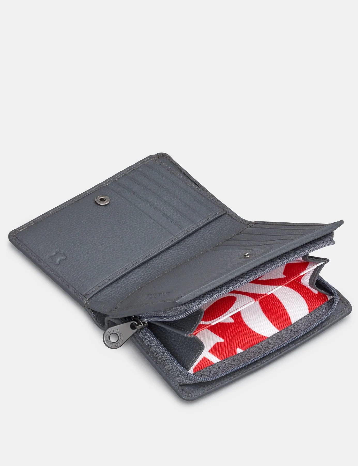 This genuine leather flap over purse honours the profoundly influential Brontë siblings; Anne, Charlotte and Emily. Three women who changed the face of literature with their passion, originality and intrepid spirit. With themes of love, independence and revenge heavily present amongst their novels and poetry the principal colours had to be dark and moody whilst still graced with significant bursts of boldness which compliment the grey leather. This women's leather purse wallet features titles such as Jane Eyre & Wuthering Heights and features RFID Protection.