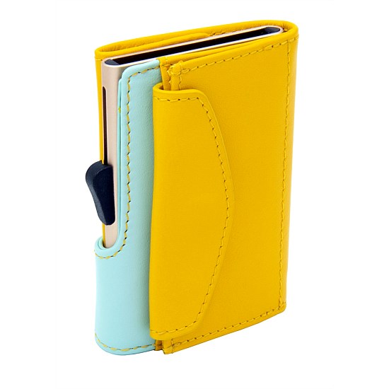 C-Secure Single Wallet With Coin Pocket - Saffron/Aqua