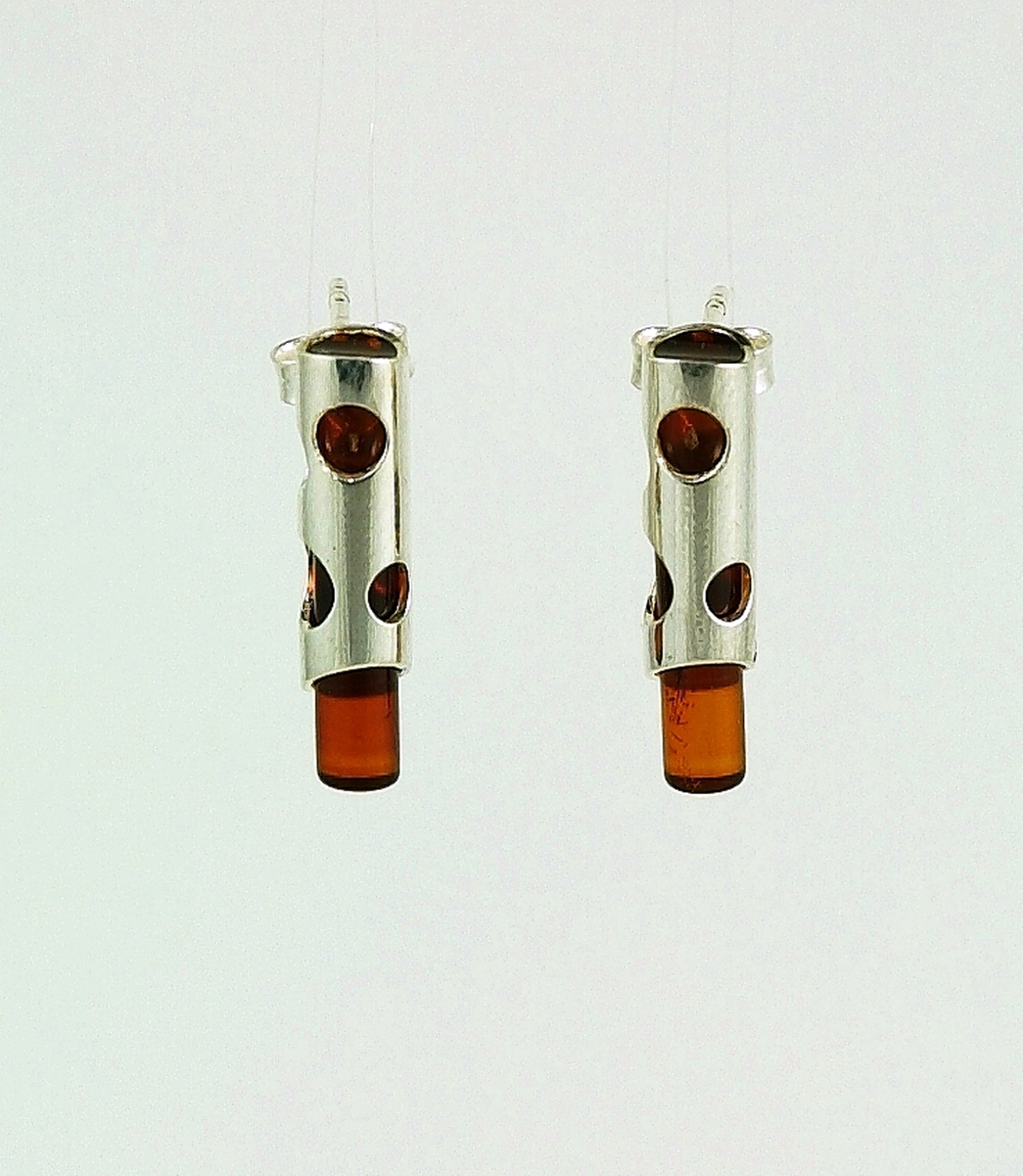 Contemporary Genuine Baltic Amber & Sterling Silver Earrings