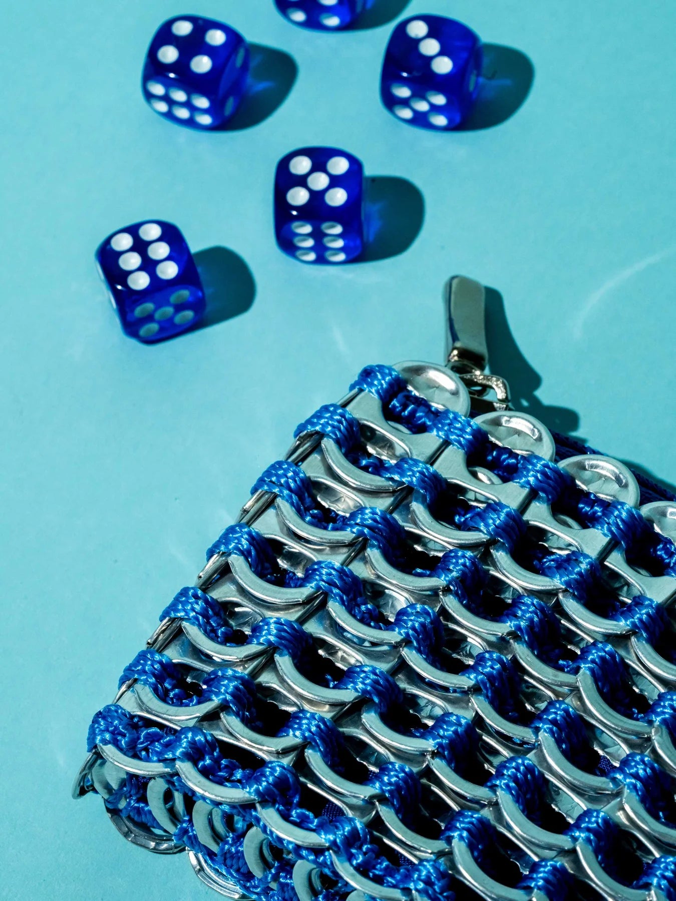 Material(s): Up-cycled aluminum, synthetic fabric liner, nylon zipper