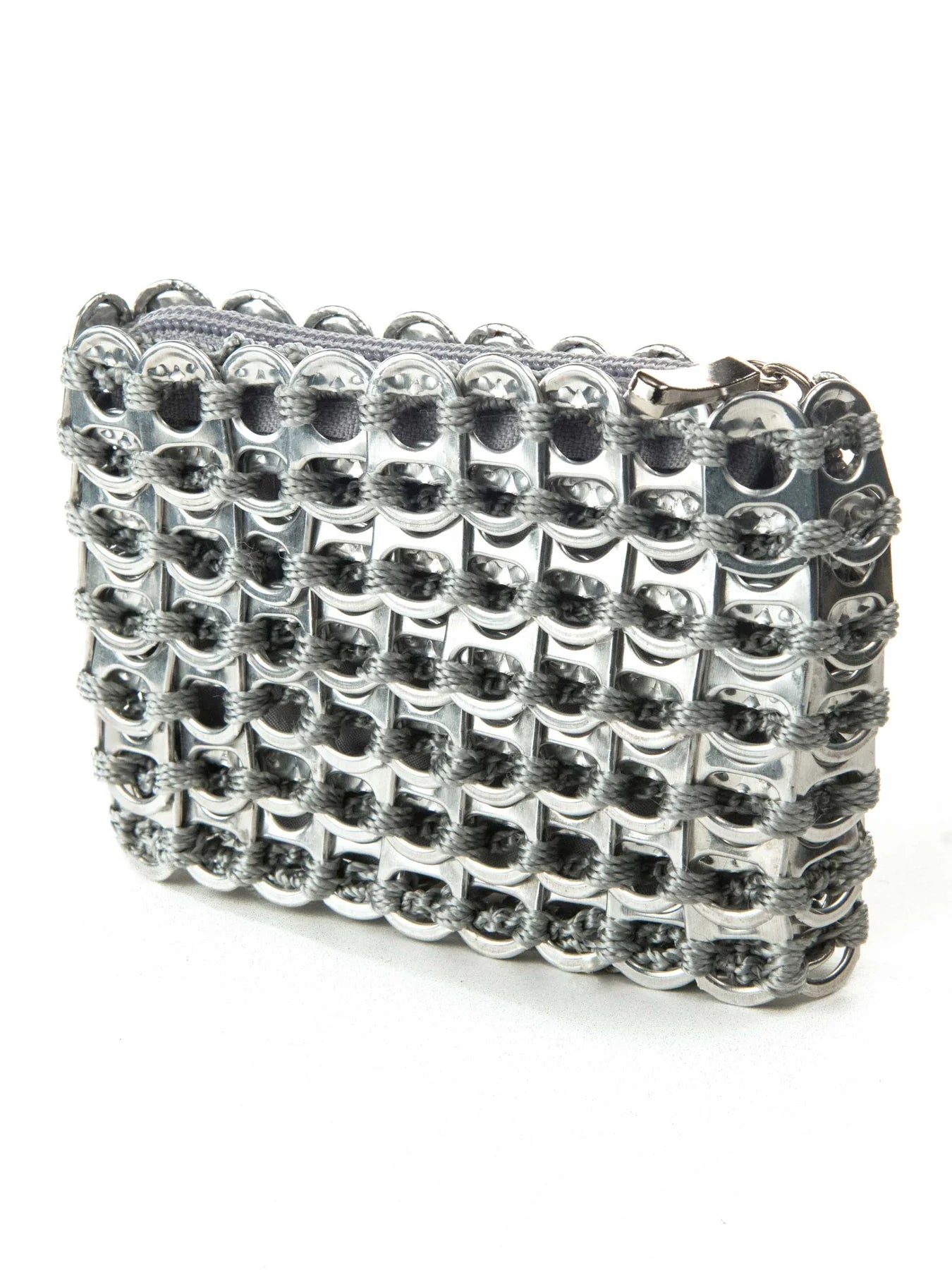 Material(s): Up-cycled aluminum, synthetic fabric liner, nylon zipper