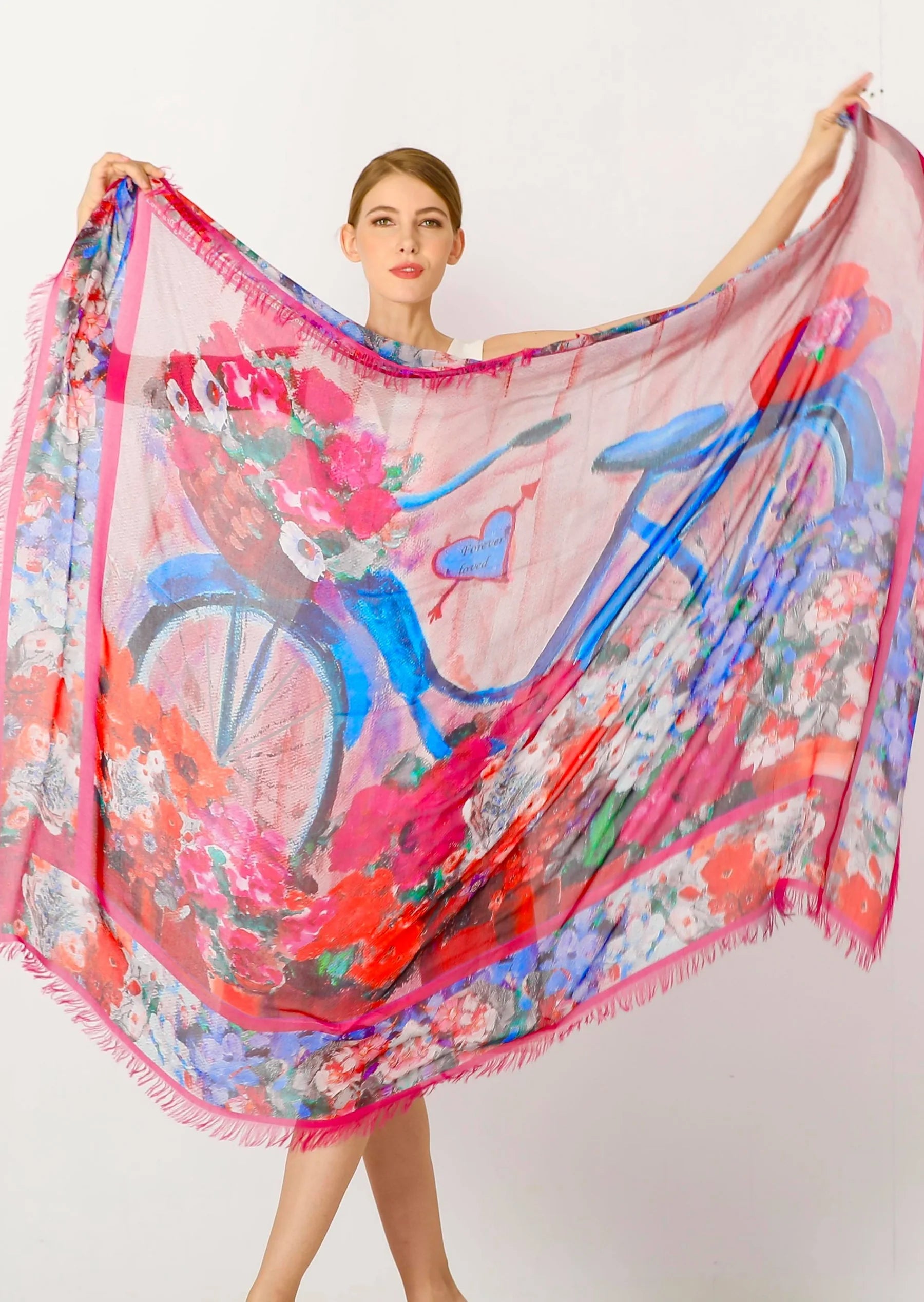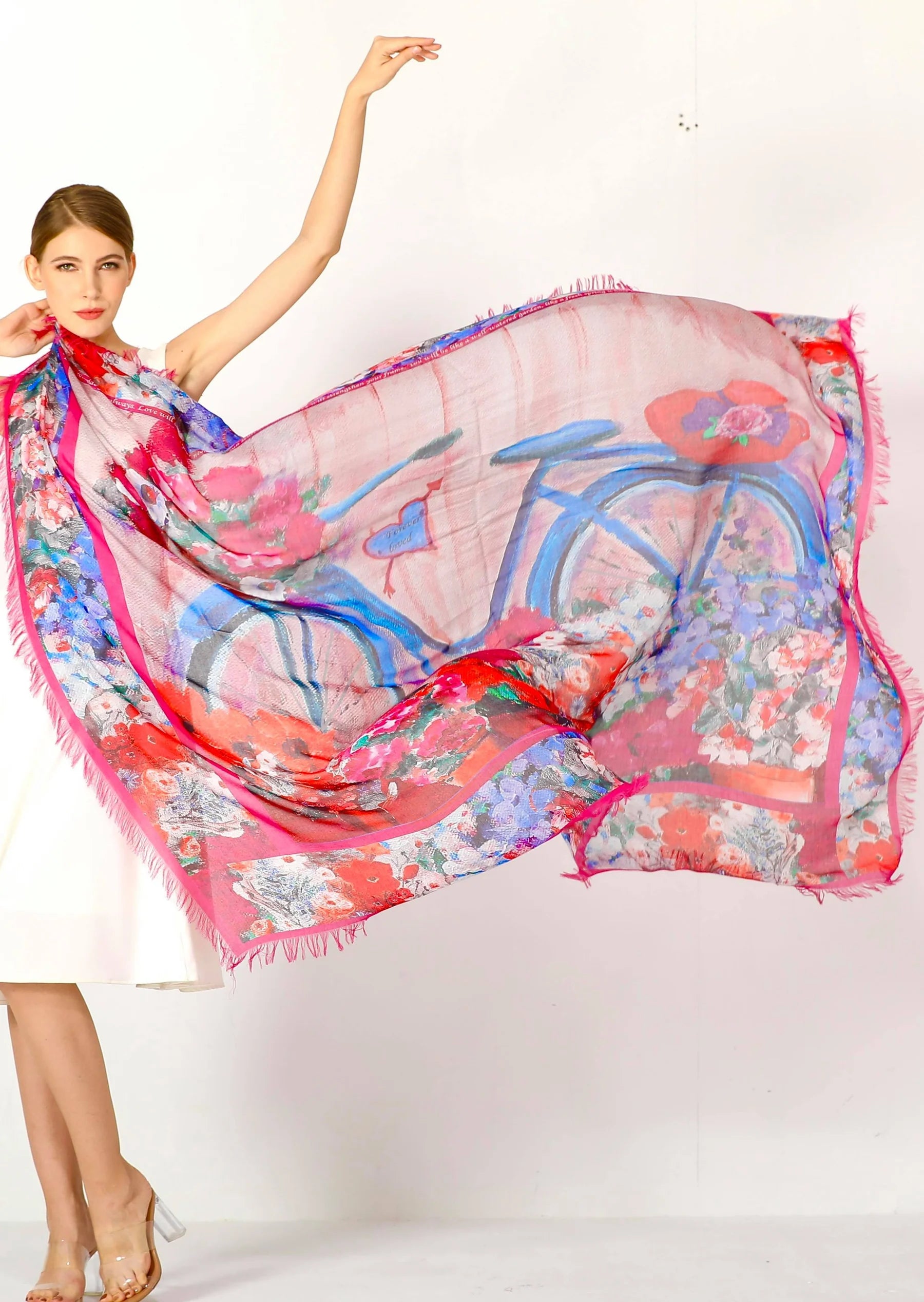 Love's Pure Light Scarf D-205 Heading In The Right Direction - Blue Bicycle Scarf