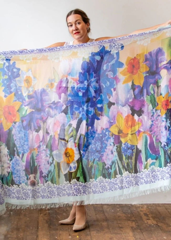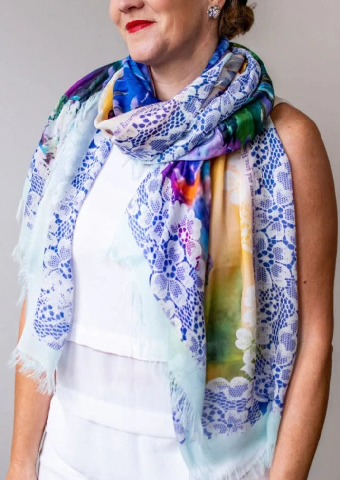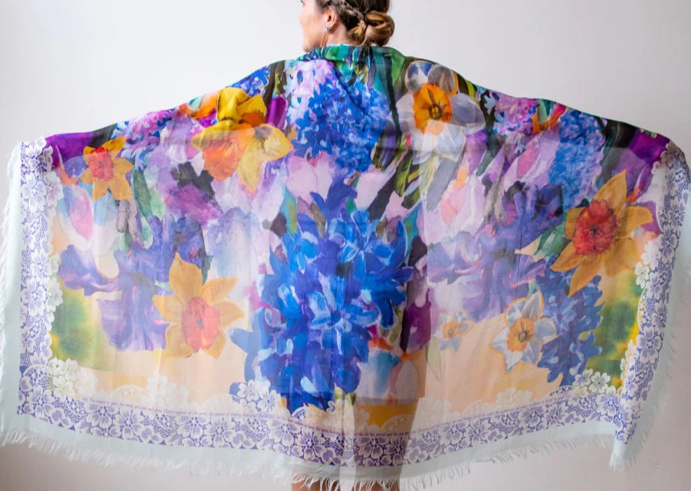 Love's Pure Light Scarf D-427 Hyacinth, I Am Intoxicated By Your Presence. Signed Daffodil Scarf