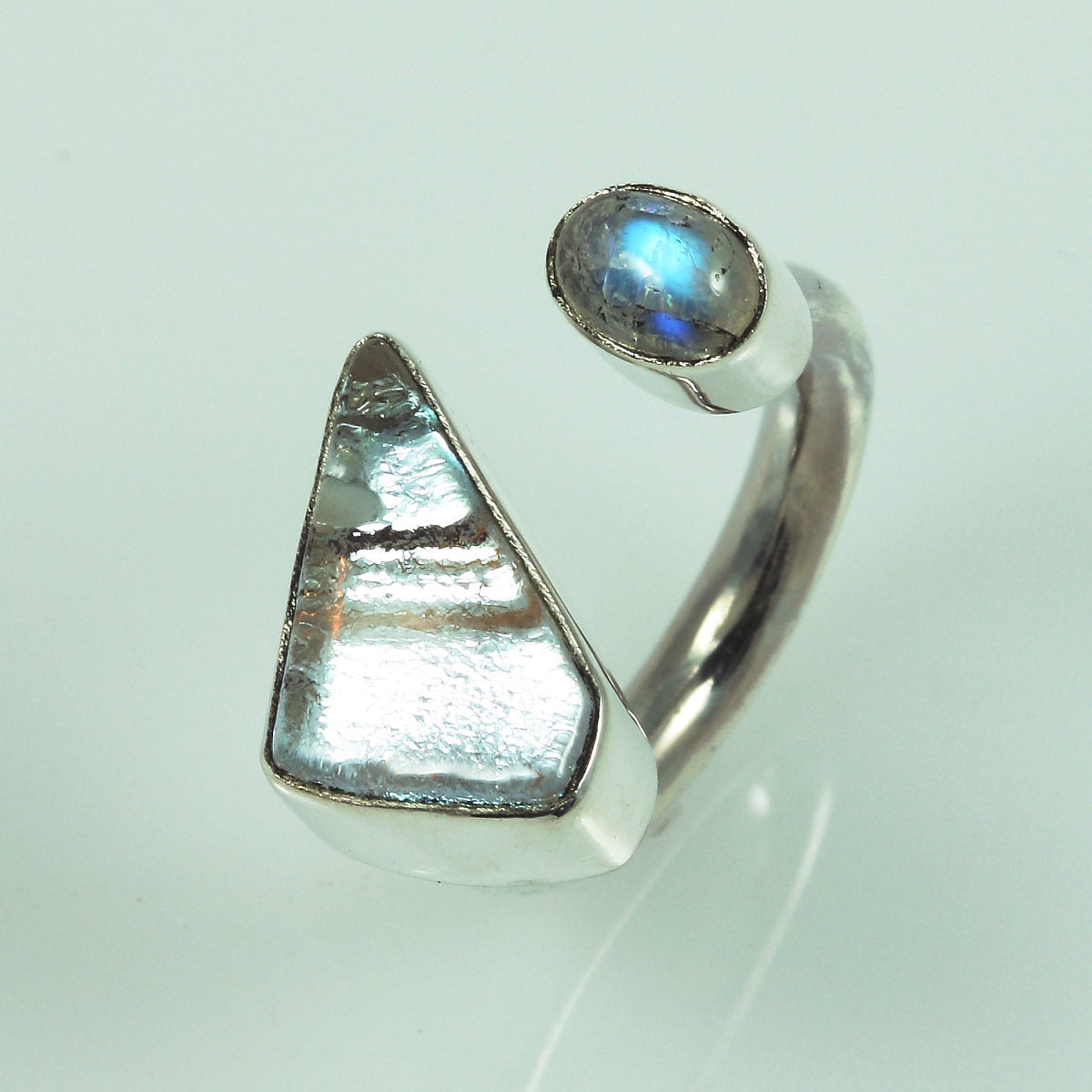 Designer Patti Quinn Fused Glass Ring With Rainbow Moonstone