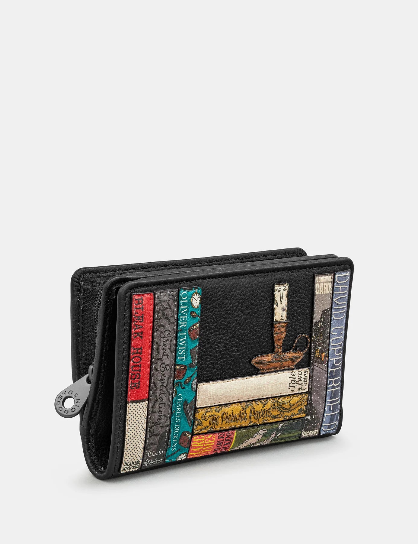 Charles Dickens was a literary genius and widely regarded as the greatest novelist of the Victorian era. Here we pay tribute with this leather purse for women featuring his most loved works. Each of the famous book titles have been hand drawn to capture the tone and themes that are contained within the novels. From the industrialist ideas of Hard Times to the enchanting and slightly spooky a Christmas Carol, these novels pop on the front of this purse wallet shap. This womens flap over leather purse has RFID Protection and fits coins, cards, and notes.