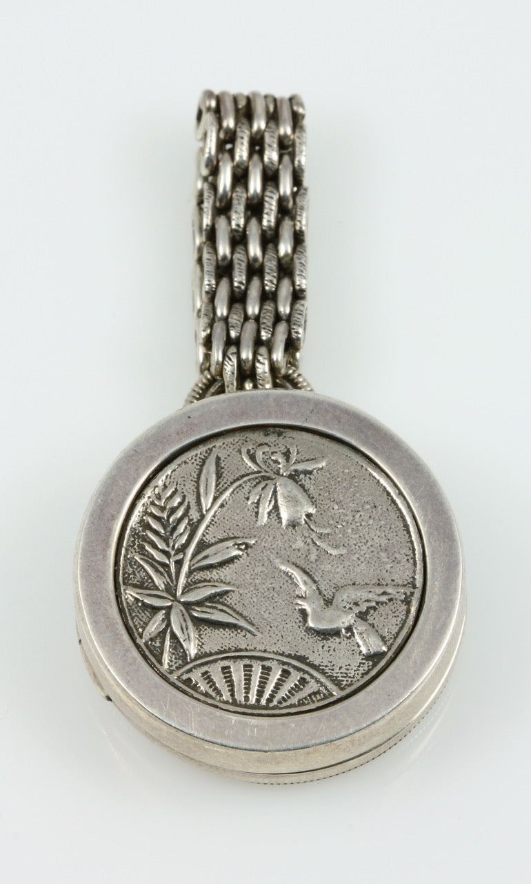 Sterling Silver Locket Cast From Vintage Medallion Featuring Flowers, Fan & Bird