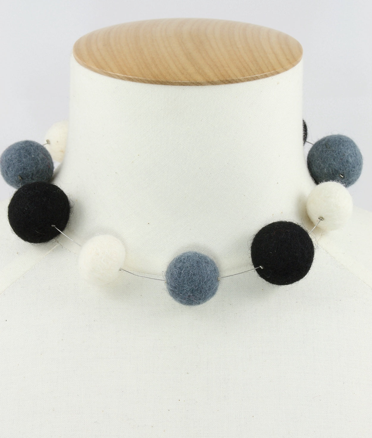 This bold and fun necklace features hand-felted wool balls and is lightweight and easy to wear.