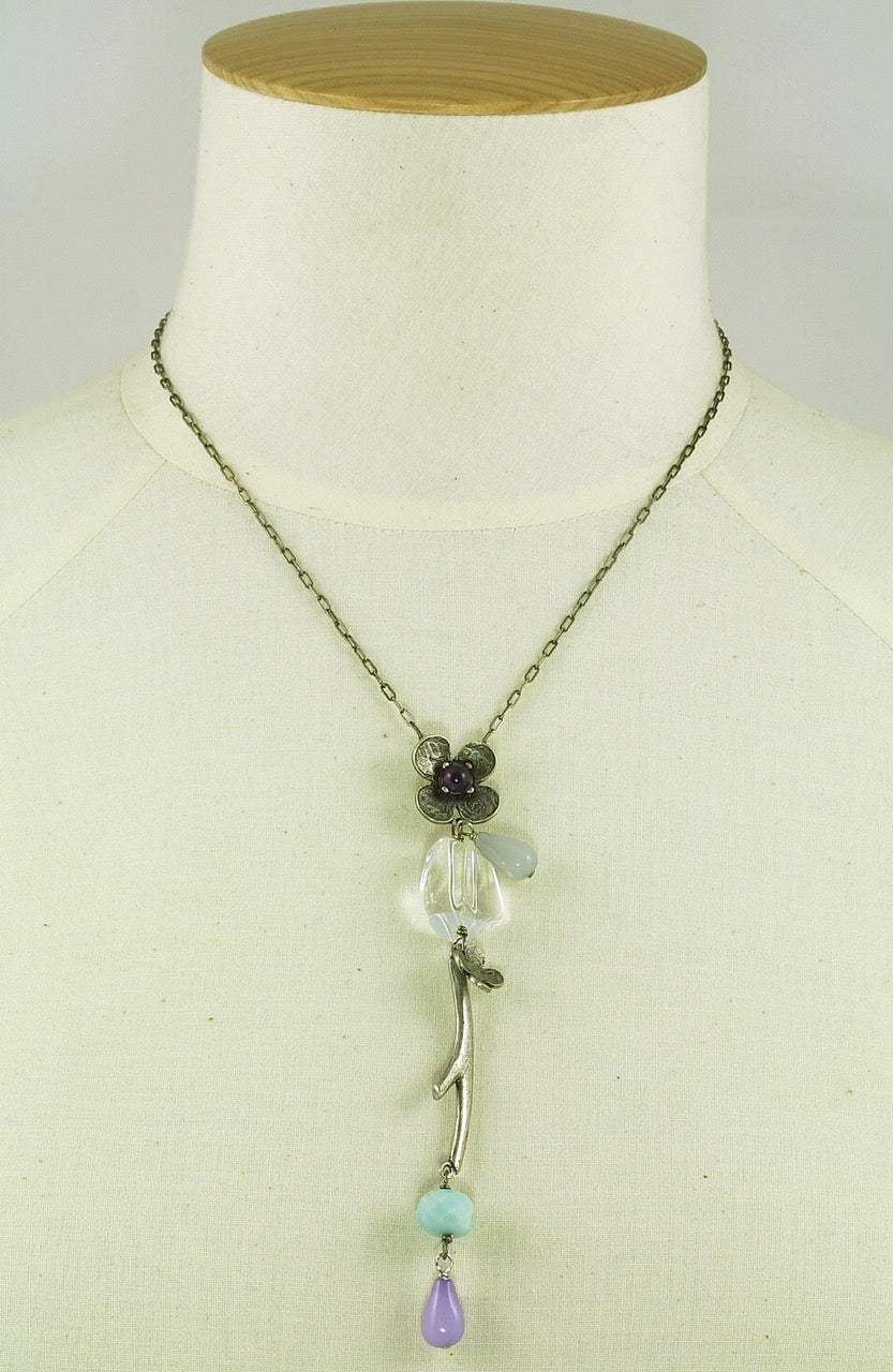 Noted French Designer Delphin Nardin presents this stunning floral inspired collection featuring metal elements of her own design combined artfully with natural stone and resin beads.