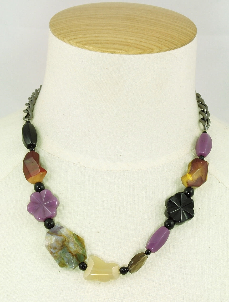 Noted French Designer Delphine Nardin presents this Art Deco inspired collection featuring resin elements of her own design..