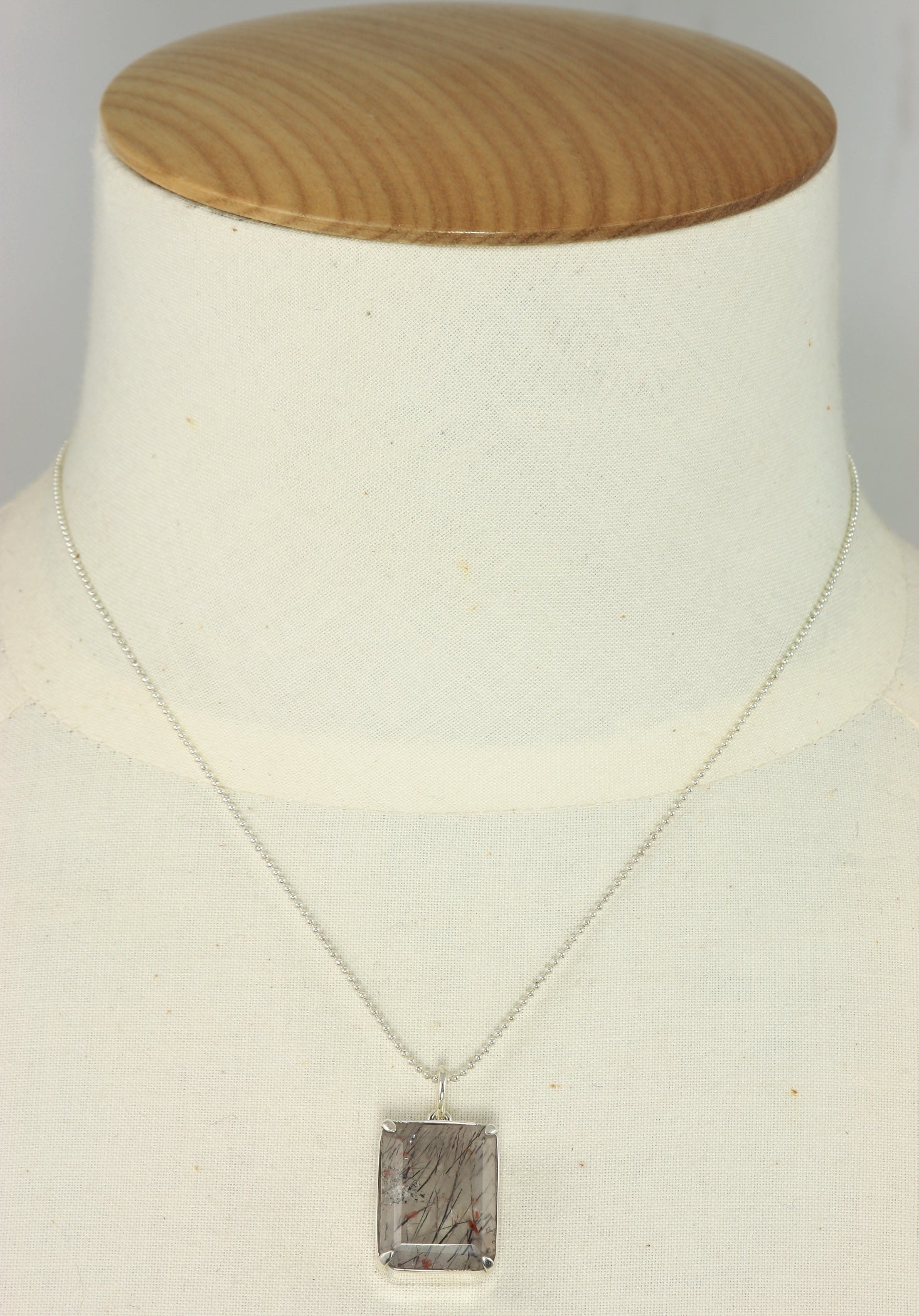 Great Falls Metalwork Tourmalinated Quartz Pendant on Chain Necklace