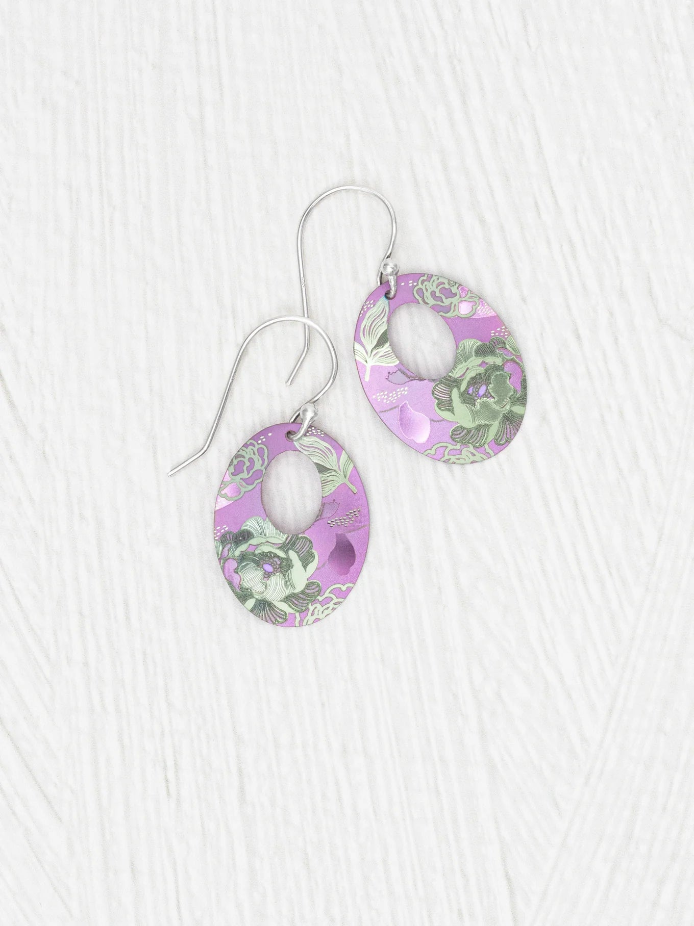 Heather paints with whispers and winks. Vivid niobium brings to life a captivating dance of petals and lace, leaving just enough unsaid to intrigue. The open center is a window to possibilities, framed in vibrant allure that transforms these earrings from mere accessories into wearable poetry.