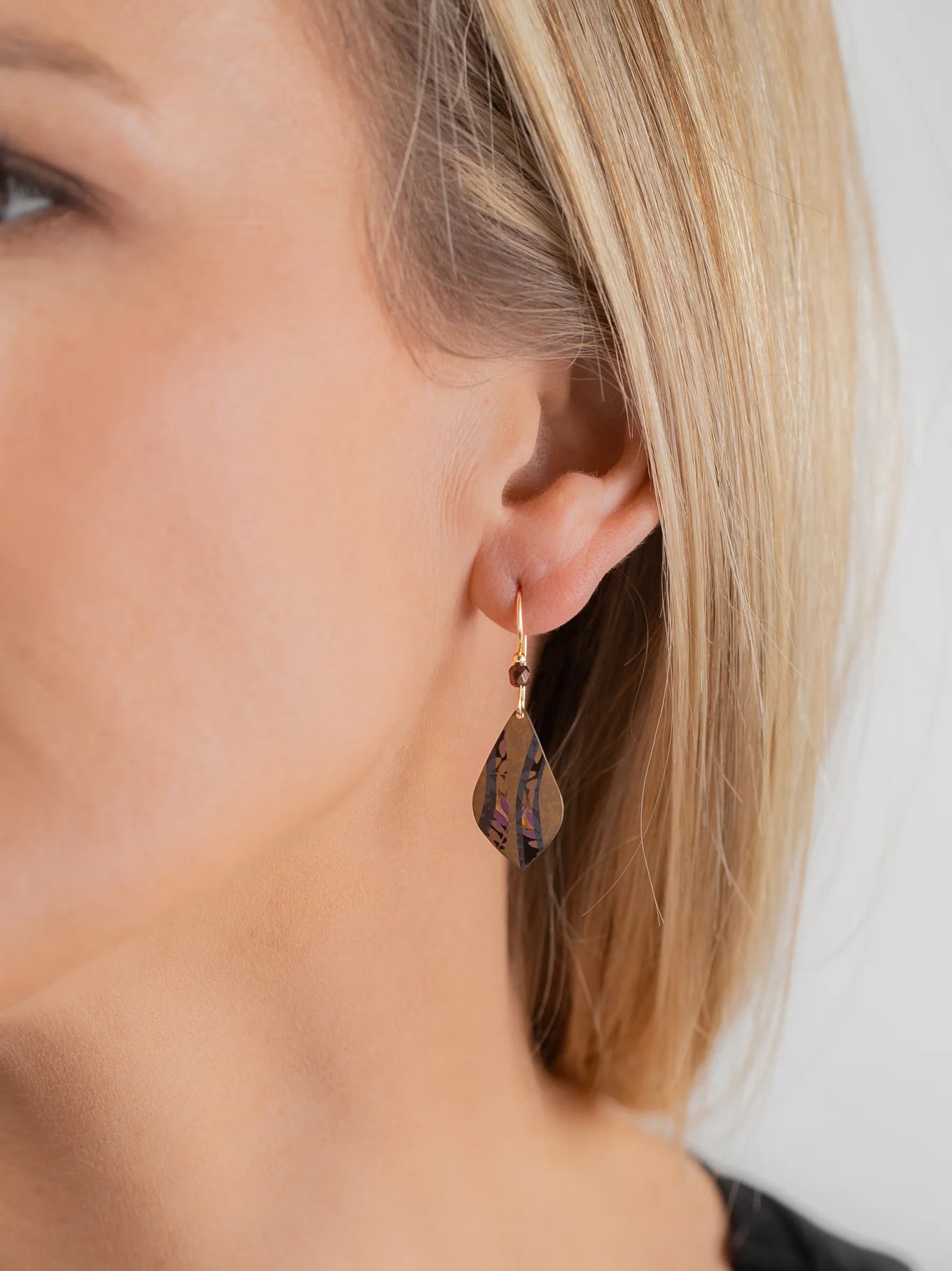 For the fashionista, fauna lover, or anyone who appreciates fine design, the Riverwind Earrings offer elegance and simple styling for everyday wear. Waves of color and leaves on the vine complement each other in the most captivating way. A single crystal bead tops off its botanical beauty with a spark of brilliance.