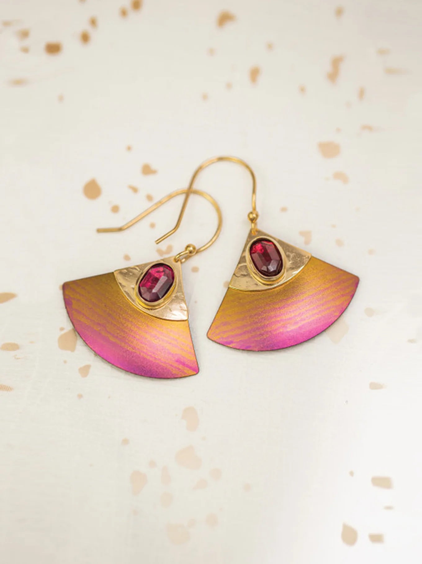 The elegant fan shape of this earring features show-stopping vibrantly hued niobium and colored crystals.