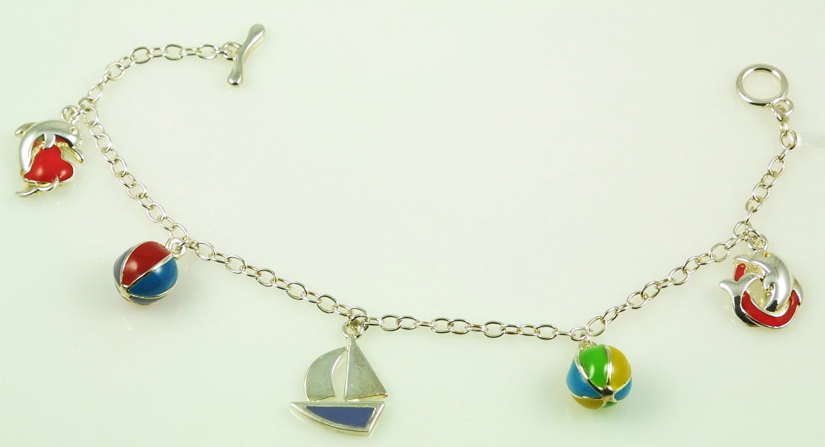 This fun charm bracelet features a boat, dolphins, and colourful beach balls.