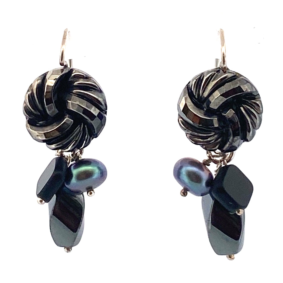 Kathleen Robins Design Jewellery Vintage Button Earrings With Glass Beads and Freshwater Pearls