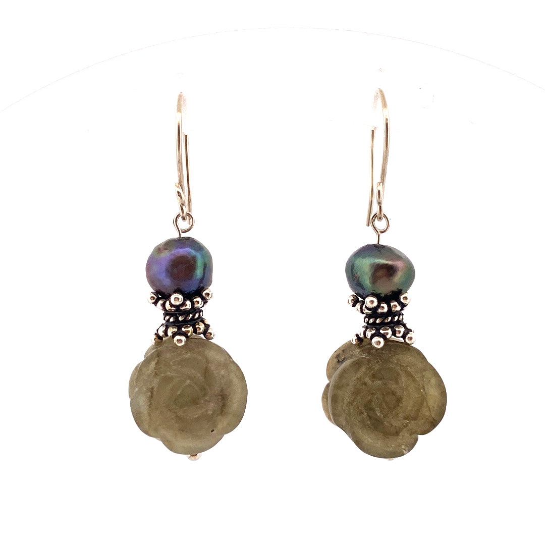 Materials: Sterling Silver, Handcarved Stone Roses, Fresh Water Pearls