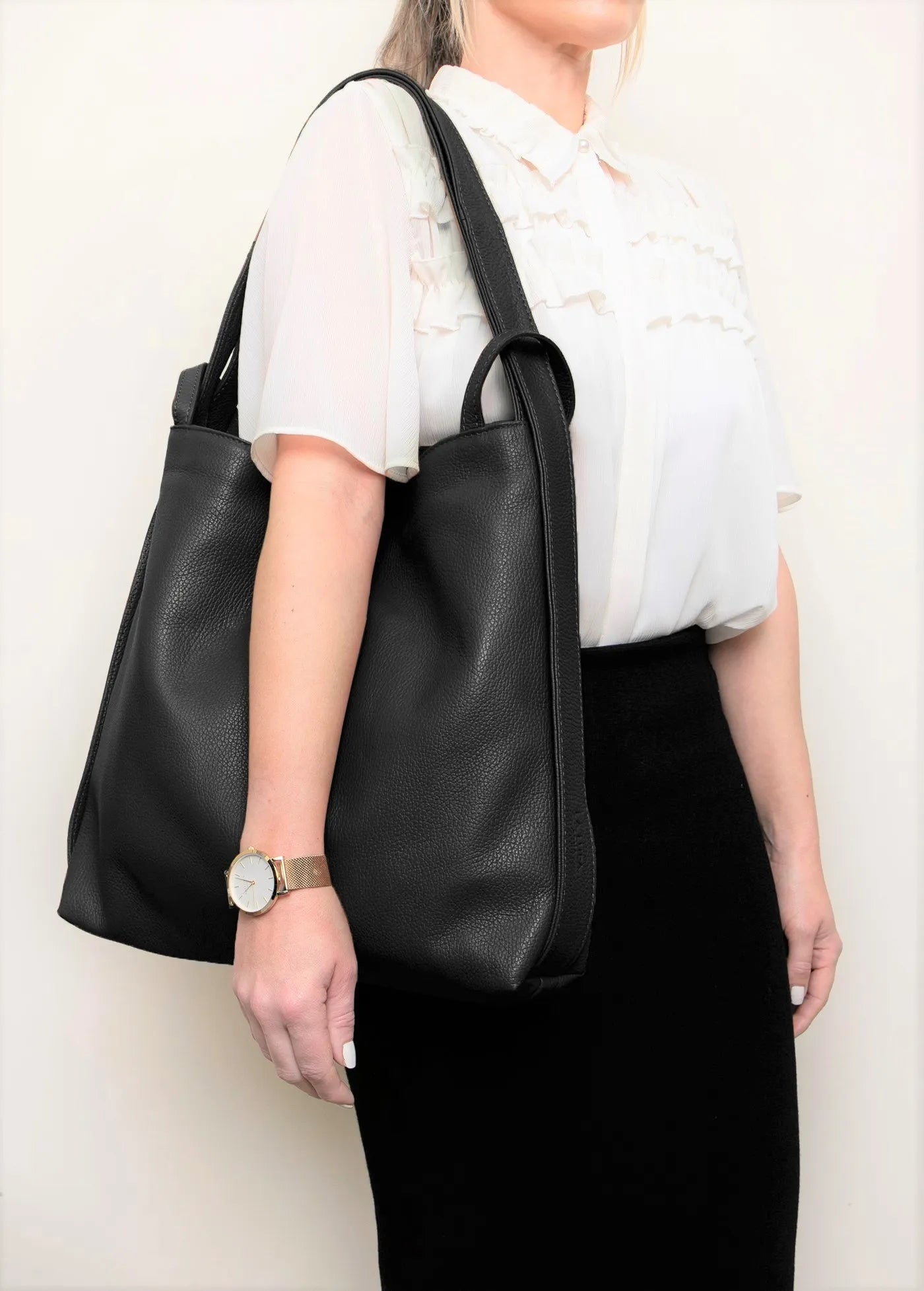 Two styles in one bag! The Bella sure is clever Italian design. It has strong adjustable leather straps so can be worn as a shoulder bag and converts into a backpack when you want to be hands-free. The Italian textured leather is soft with a slouchy silhouette but also durable and robust.