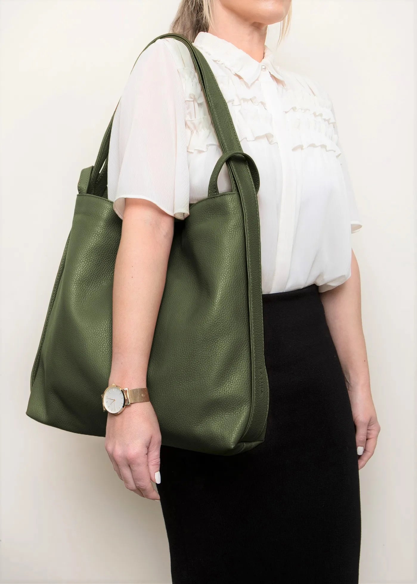 Adjustable leather straps so can be worn on shoulder or as a backpack