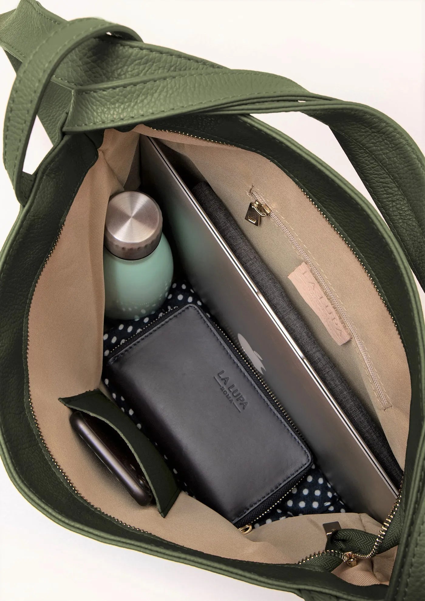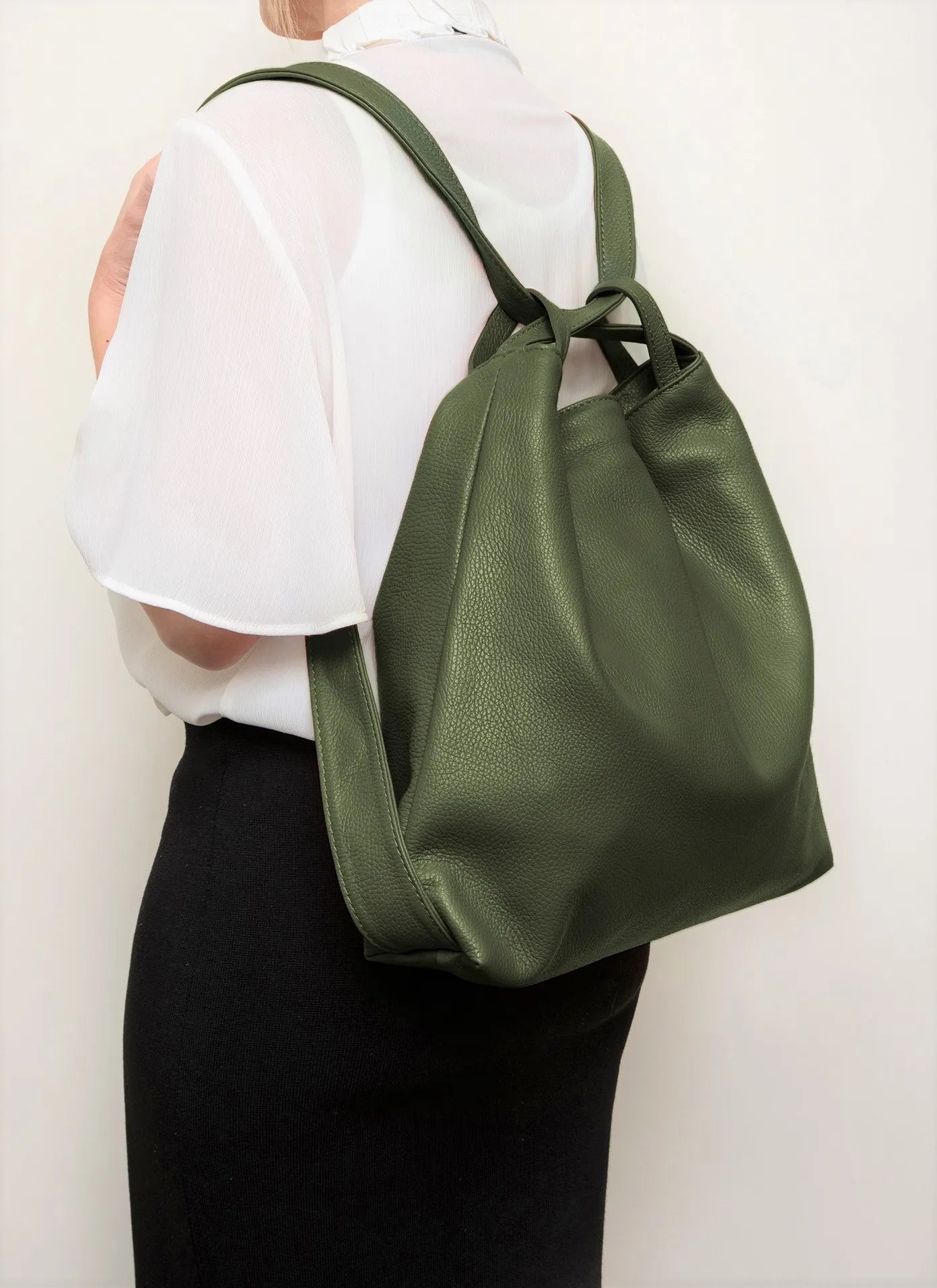 La Lupa Roma Bella Italian Leather Backpack/Shoulder Bag - Olive Green