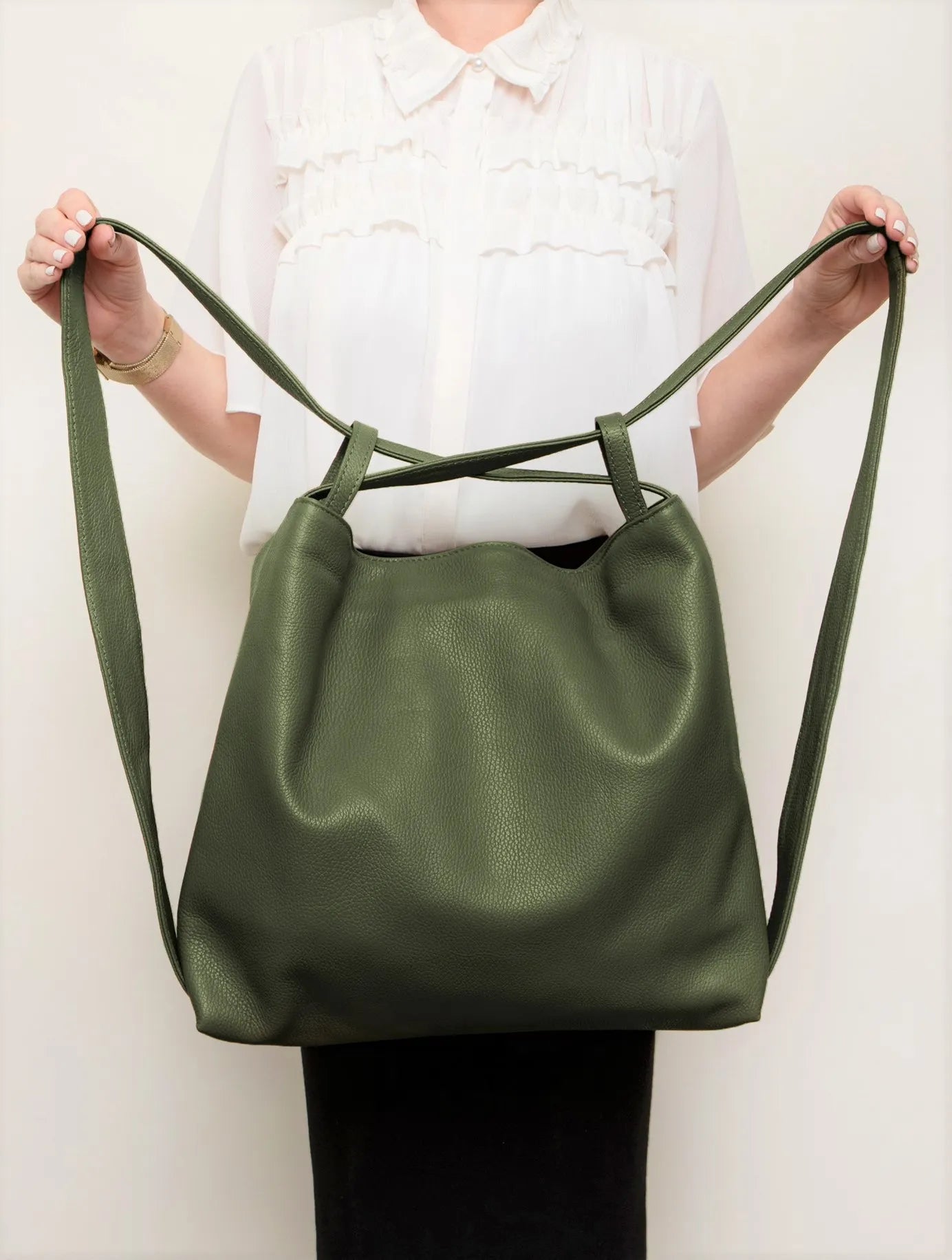Two styles in one bag! The Bella sure is clever Italian design. It has strong adjustable leather straps so can be worn as a shoulder bag and converts into a backpack when you want to be hands-free. The Italian textured leather is soft with a slouchy silhouette but also durable and robust.