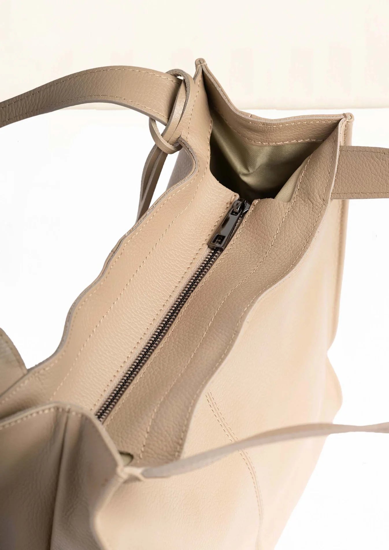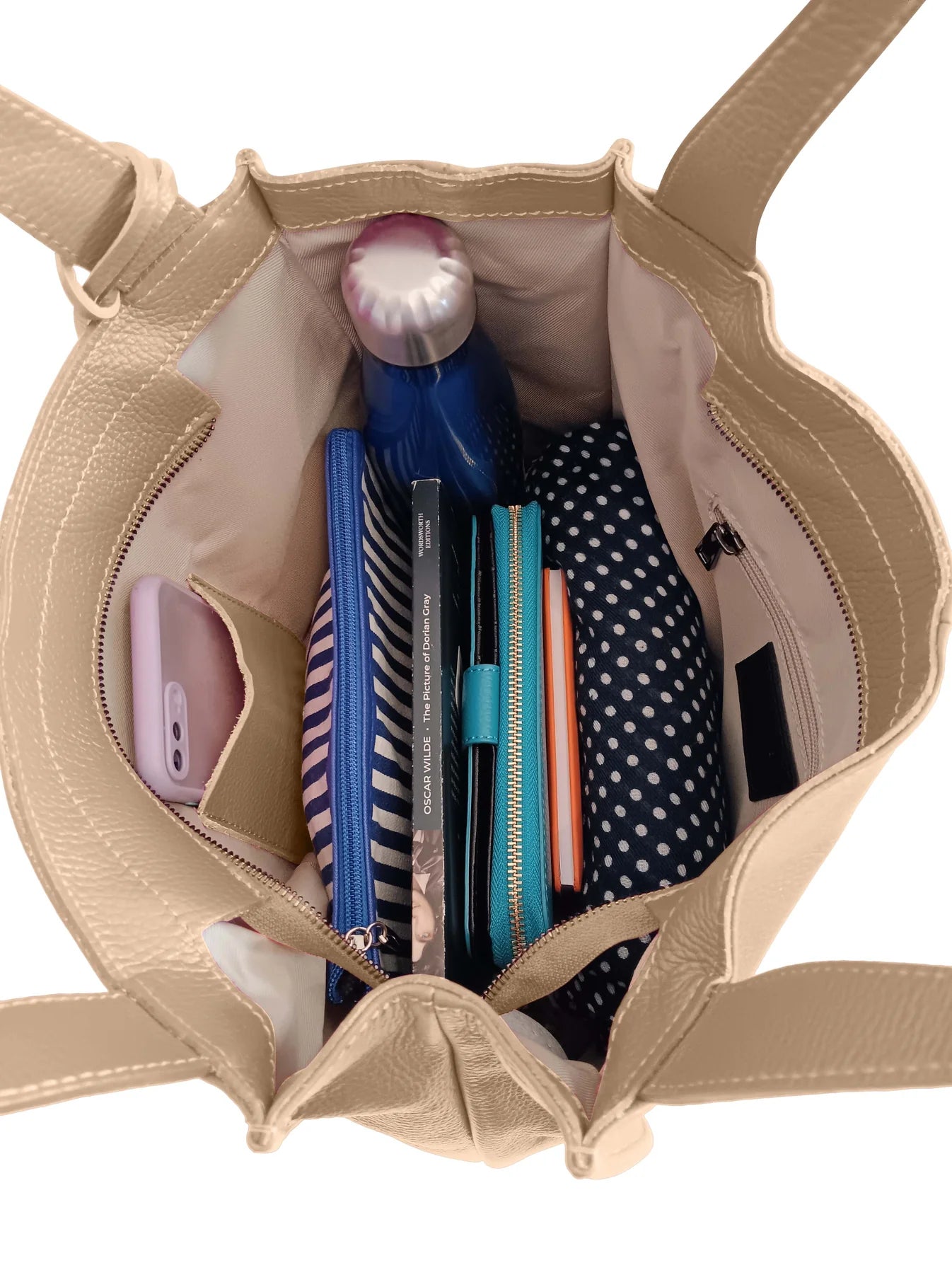 The perfect sized shoulder bag that is lightweight but still spacious and will fit all your everyday essentials with ease. It is a classic, elegant style and can easily transition from a professional work tote to a smart-casual weekend bag. The Cassia is semi-structured with soft but sturdy pebble textured Italian leather. It has a fully lined interior and is the ideal bag for travelling and shopping with full zip closure to keep all your items secure.