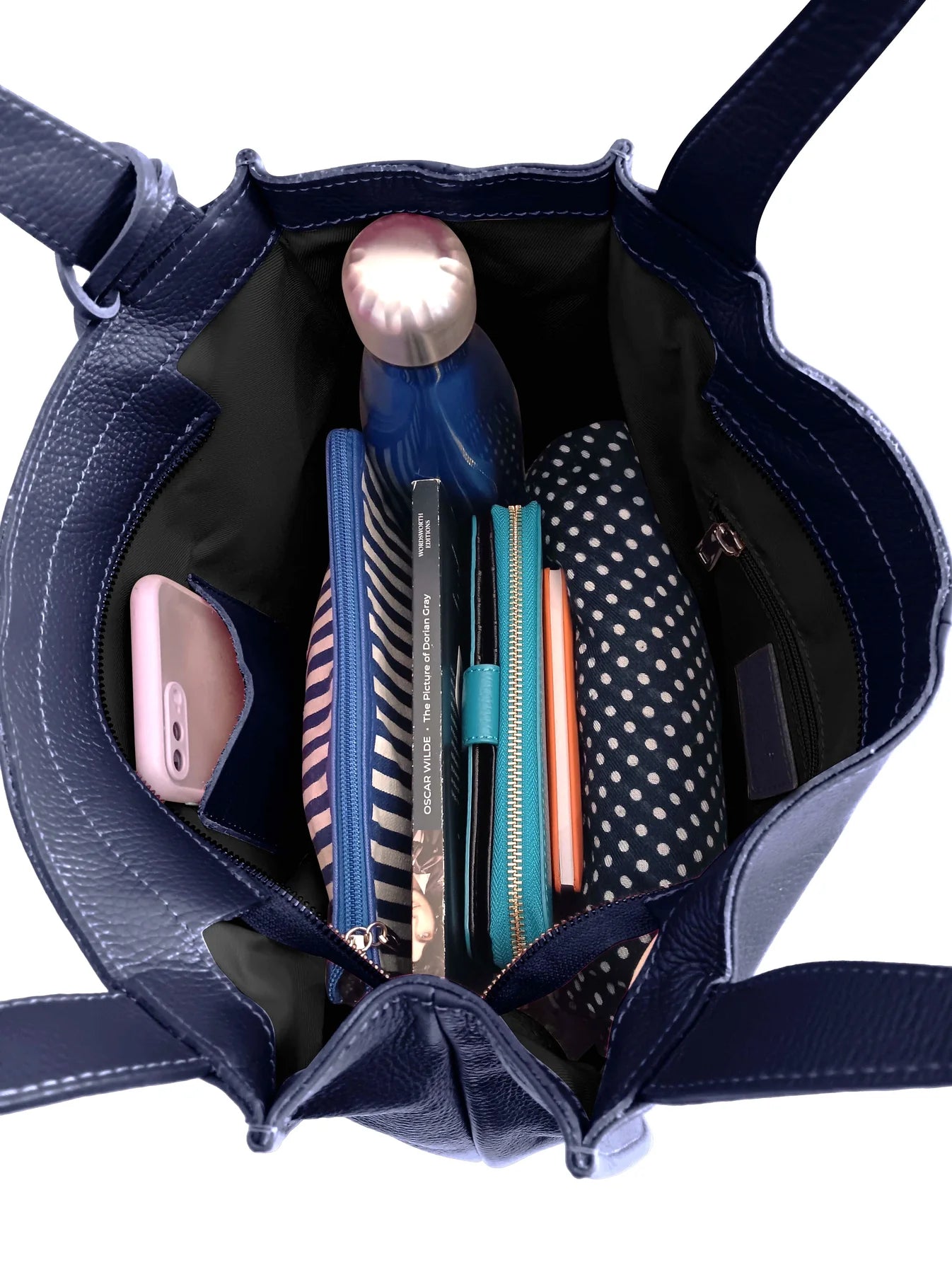 The perfect sized shoulder bag that is lightweight but still spacious and will fit all your everyday essentials with ease. It is a classic, elegant style and can easily transition from a professional work tote to a smart-casual weekend bag. The Cassia is semi-structured with soft but sturdy pebble textured Italian leather. It has a fully lined interior and is the ideal bag for travelling and shopping with full zip closure to keep all your items secure.