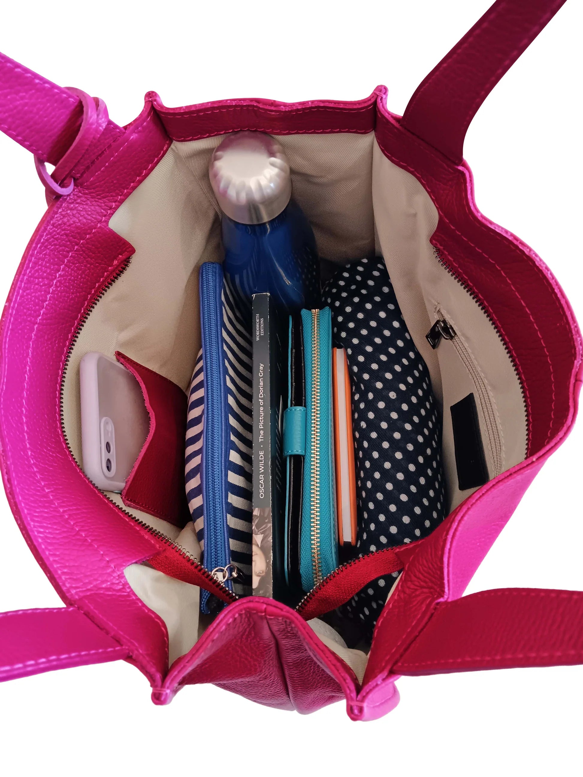 The perfect sized shoulder bag that is lightweight but still spacious and will fit all your everyday essentials with ease. It is a classic, elegant style and can easily transition from a professional work tote to a smart-casual weekend bag. The Cassia is semi-structured with soft but sturdy pebble textured Italian leather. It has a fully lined interior and is the ideal bag for travelling and shopping with full zip closure to keep all your items secure.
