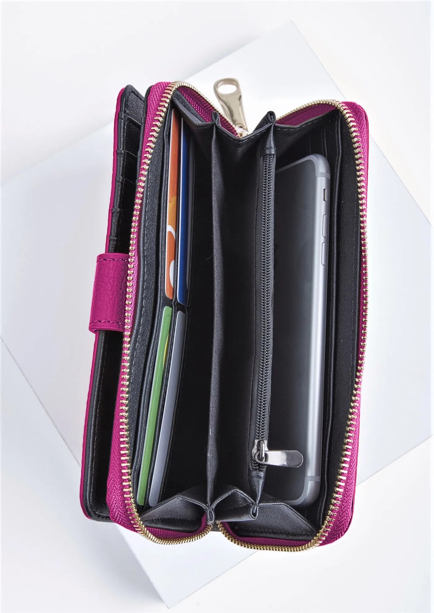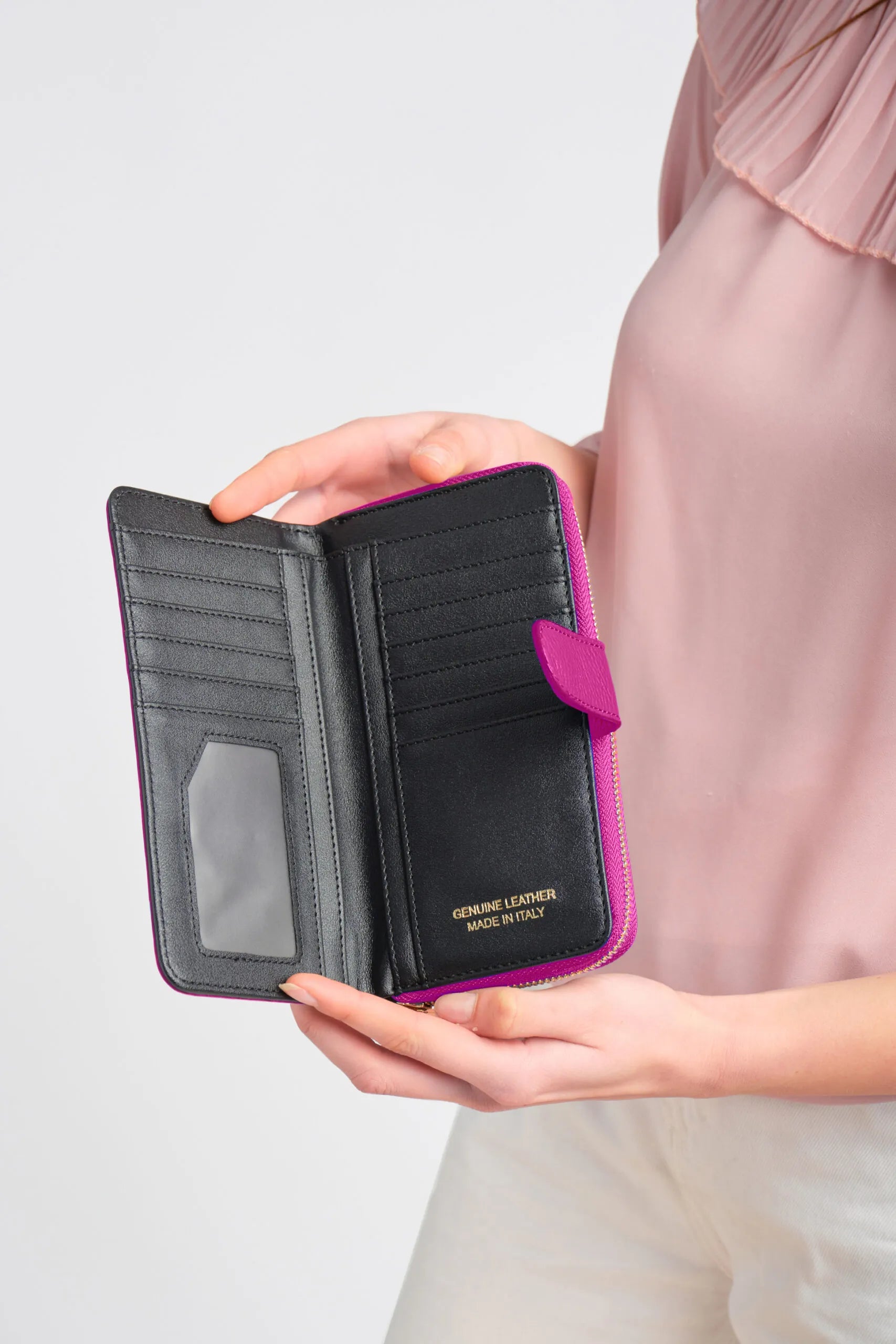 12 card slots with internal metal zip pocket for coins