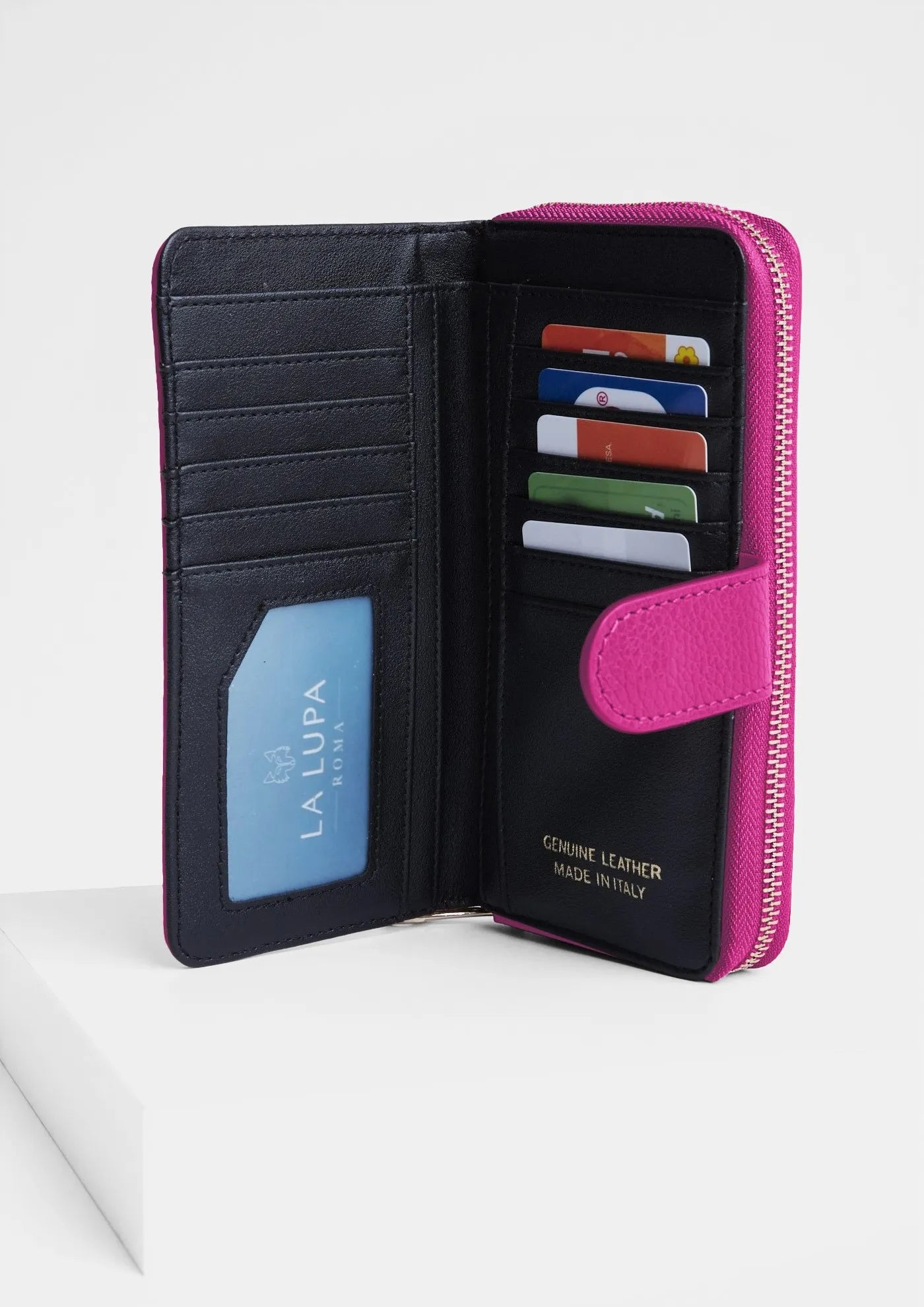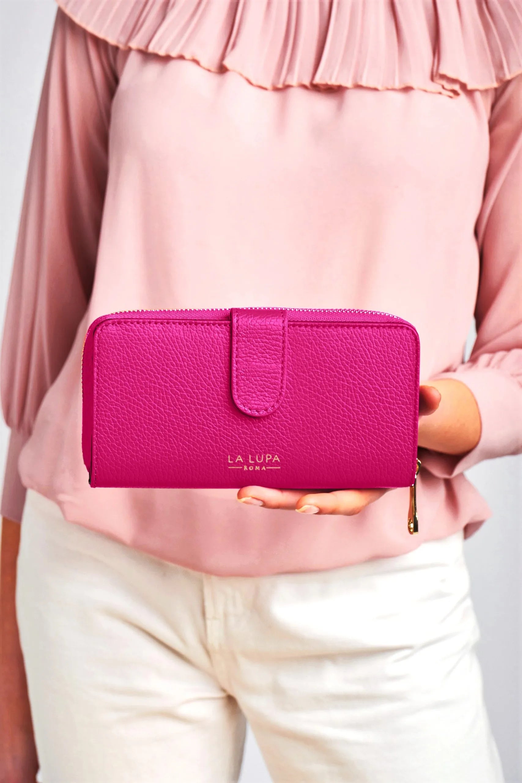 Last Chance - La Lupa Roma Eva Genuine Leather Wallet In Hot Pink
