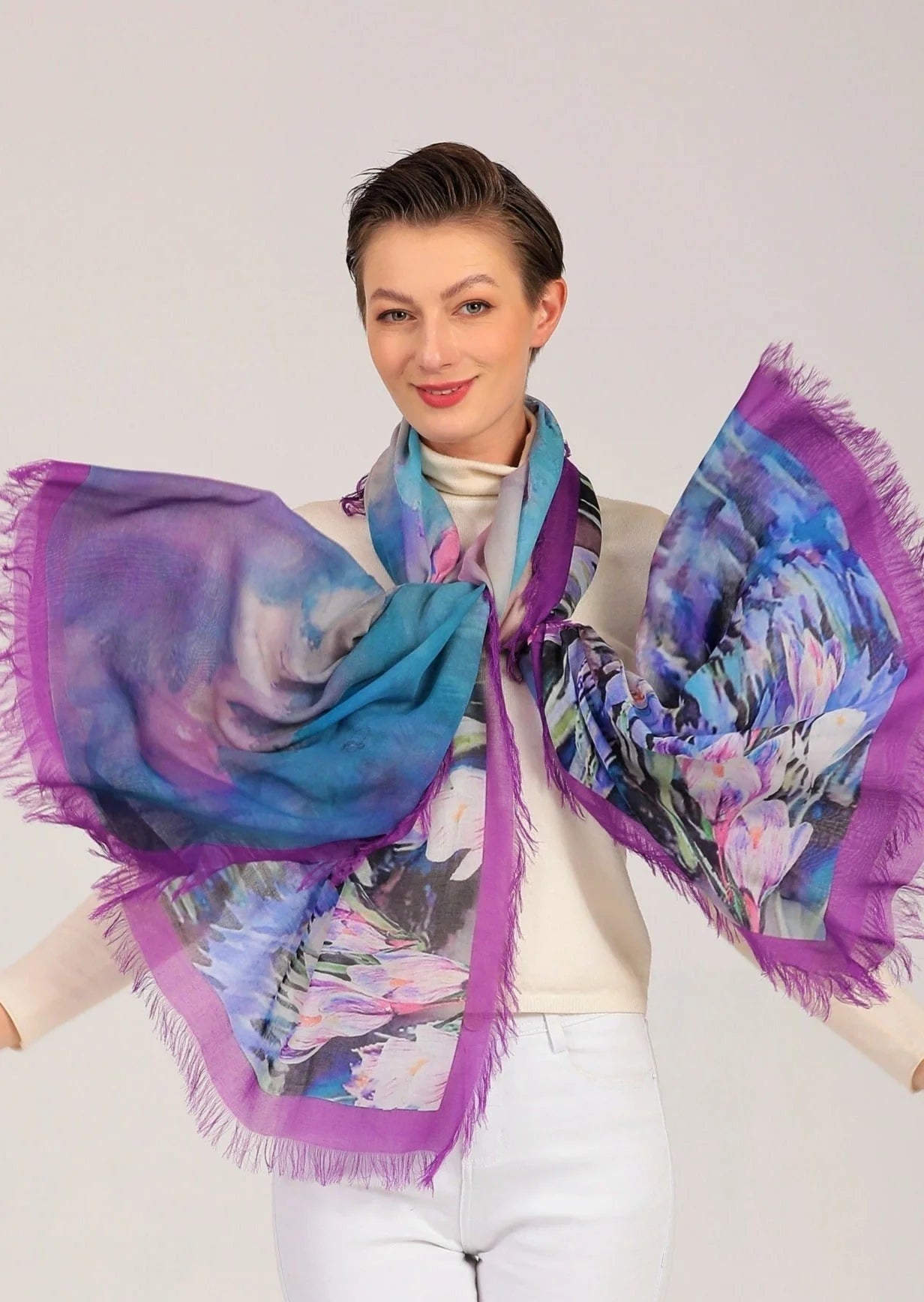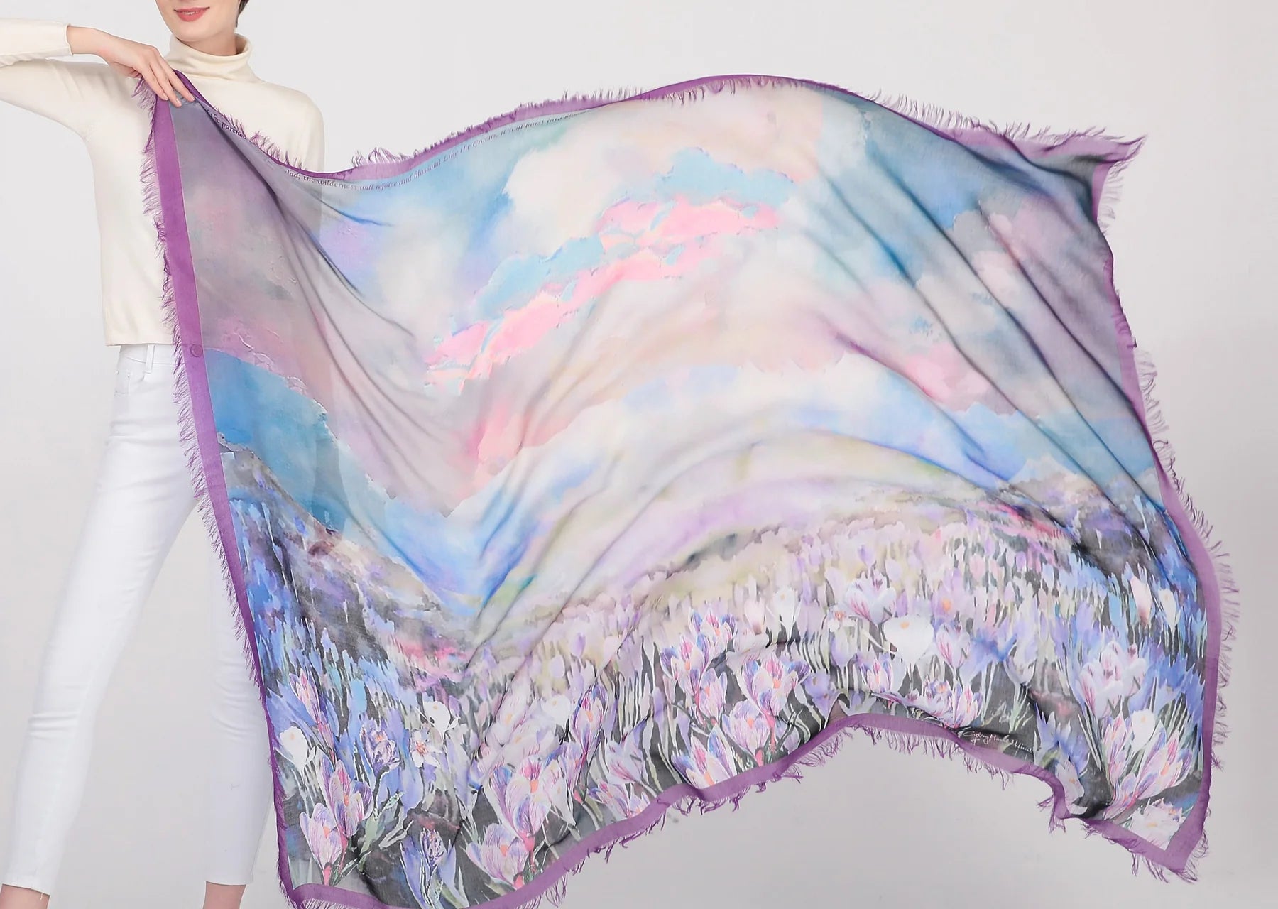 Luxury hand painted forever silk shawl: