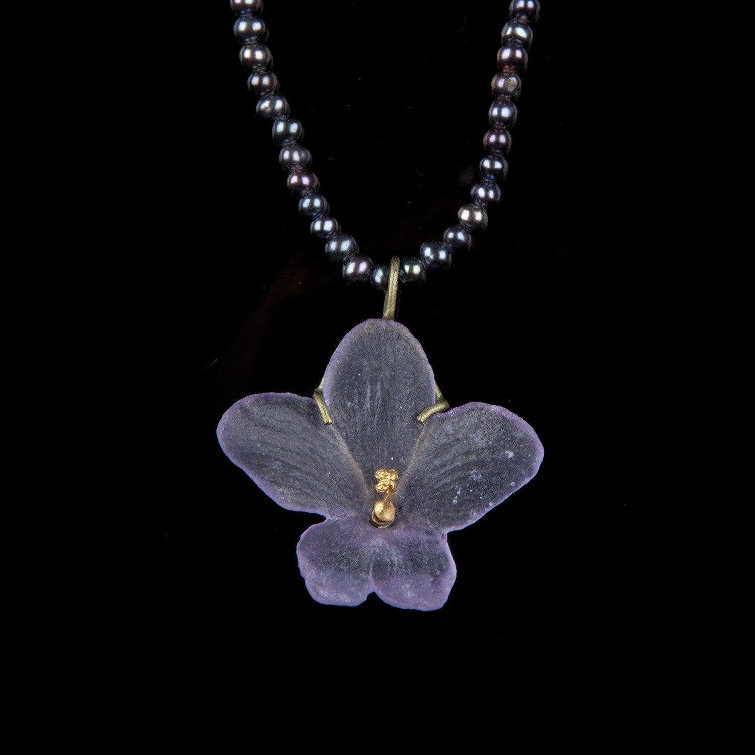 Michael Michaud African Violet Cast Glass & Bronze Pendant With Freshwater Pearls - 8924BZPK
