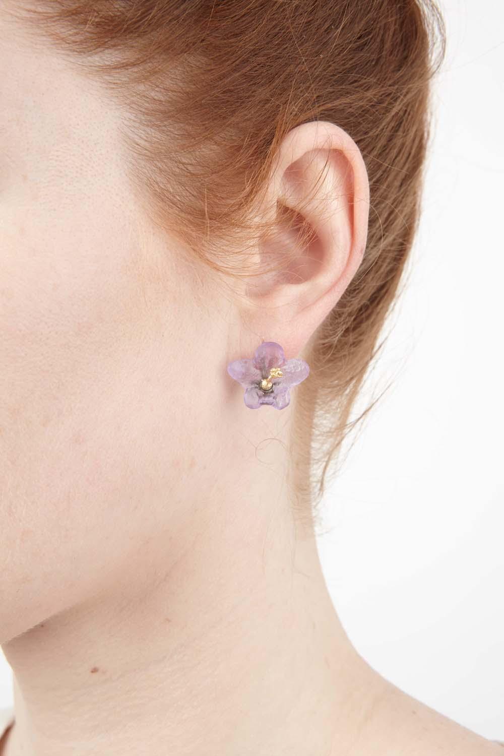 Materials: The African Violet earrings are made from hand patinated bronze and the petals are made from light blue cast glass. The hooks are 925 silver.