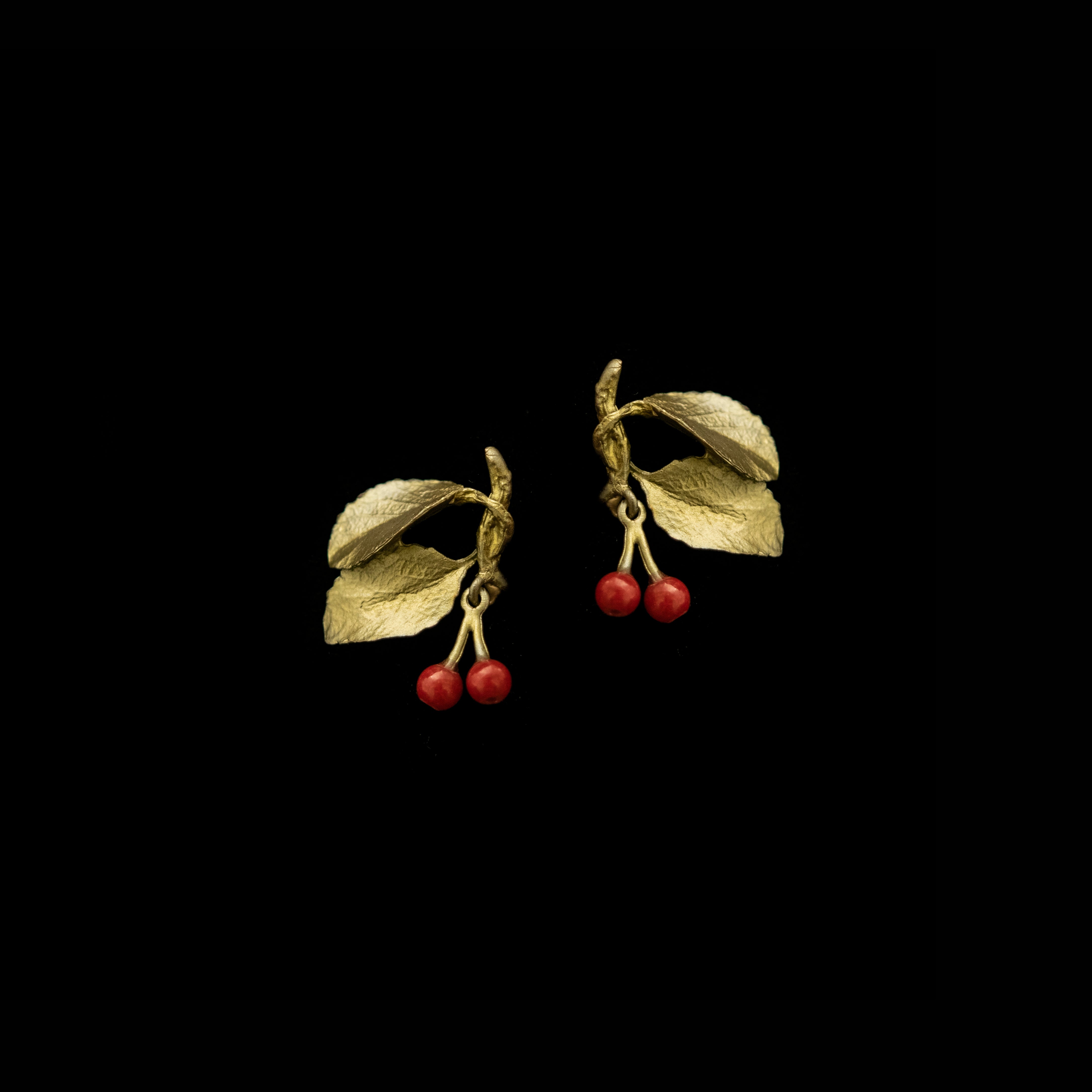 Materials: The Cherry Post earrings are handcrafted from patinaed bronze and accented with two red jade cherries.