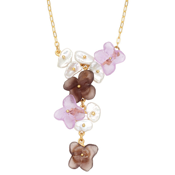 Michael Michaud French Bouquet Adjustable Pendant Necklace With Cast Glass and Keshi Pearls - 9220BZGWP