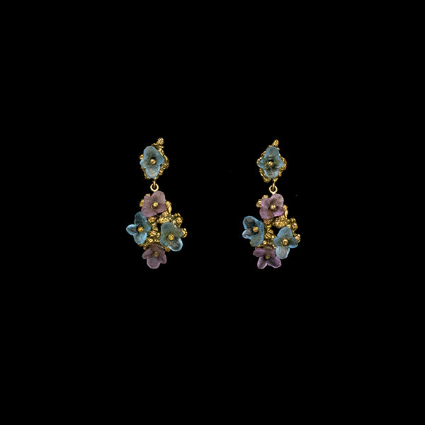 Michael Michaud Spring Cape Hydrangeas Stud Drop Earrings with Cast Glass Flowers - 3664BZ