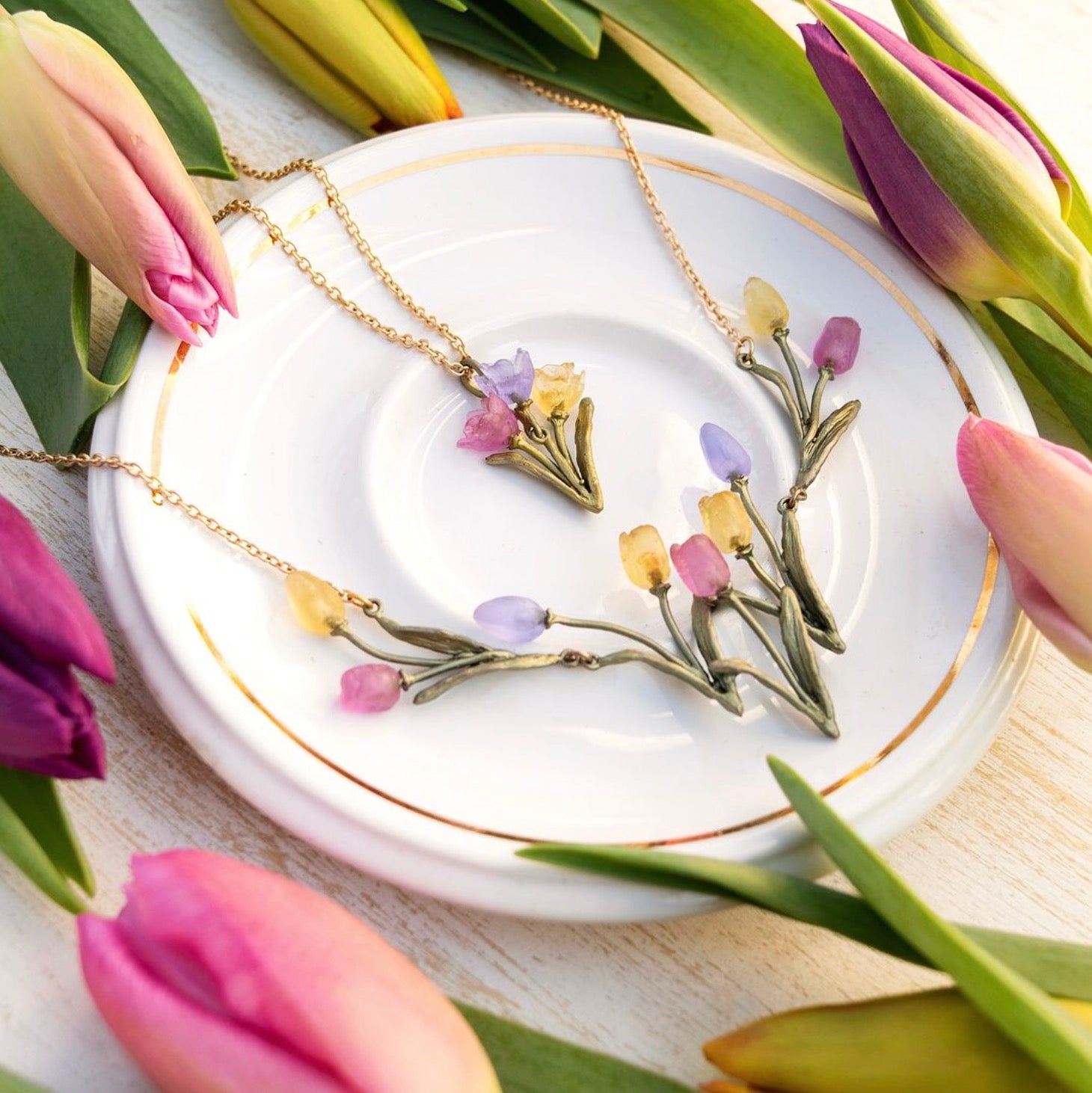Admired for their timeless beauty and symbolic significance, tulips serve as the inspiration for our collection. Native to Central Asia, these flowers have captured the hearts of the world with their vibrant hues and graceful silhouettes. Our Tulip collection pays homage to their allure, embodying the essence of nature in each finely crafted piece.